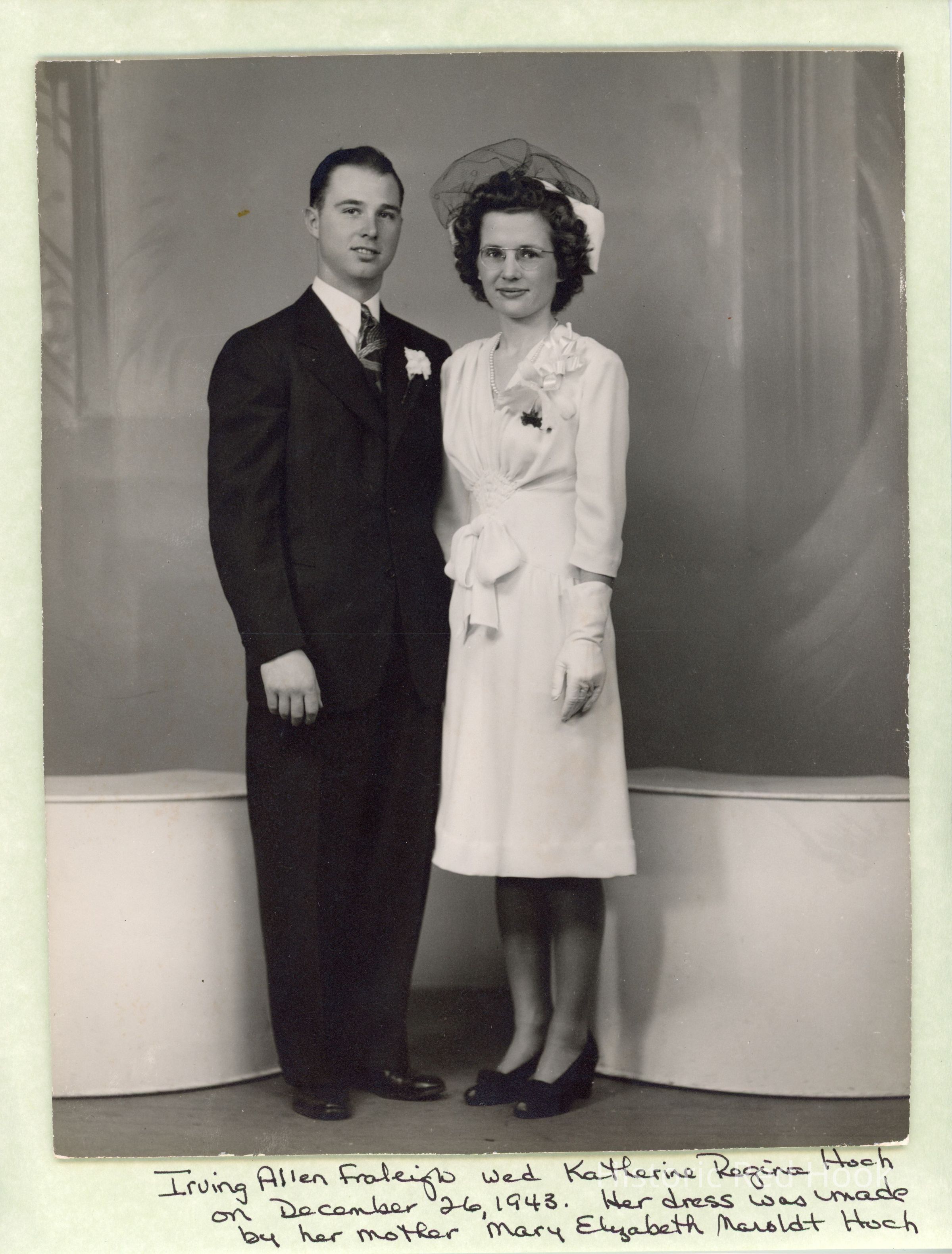 Wedding Photo of Katharine (Hoch) and Irving A. Fraleigh, 12/26/1943
