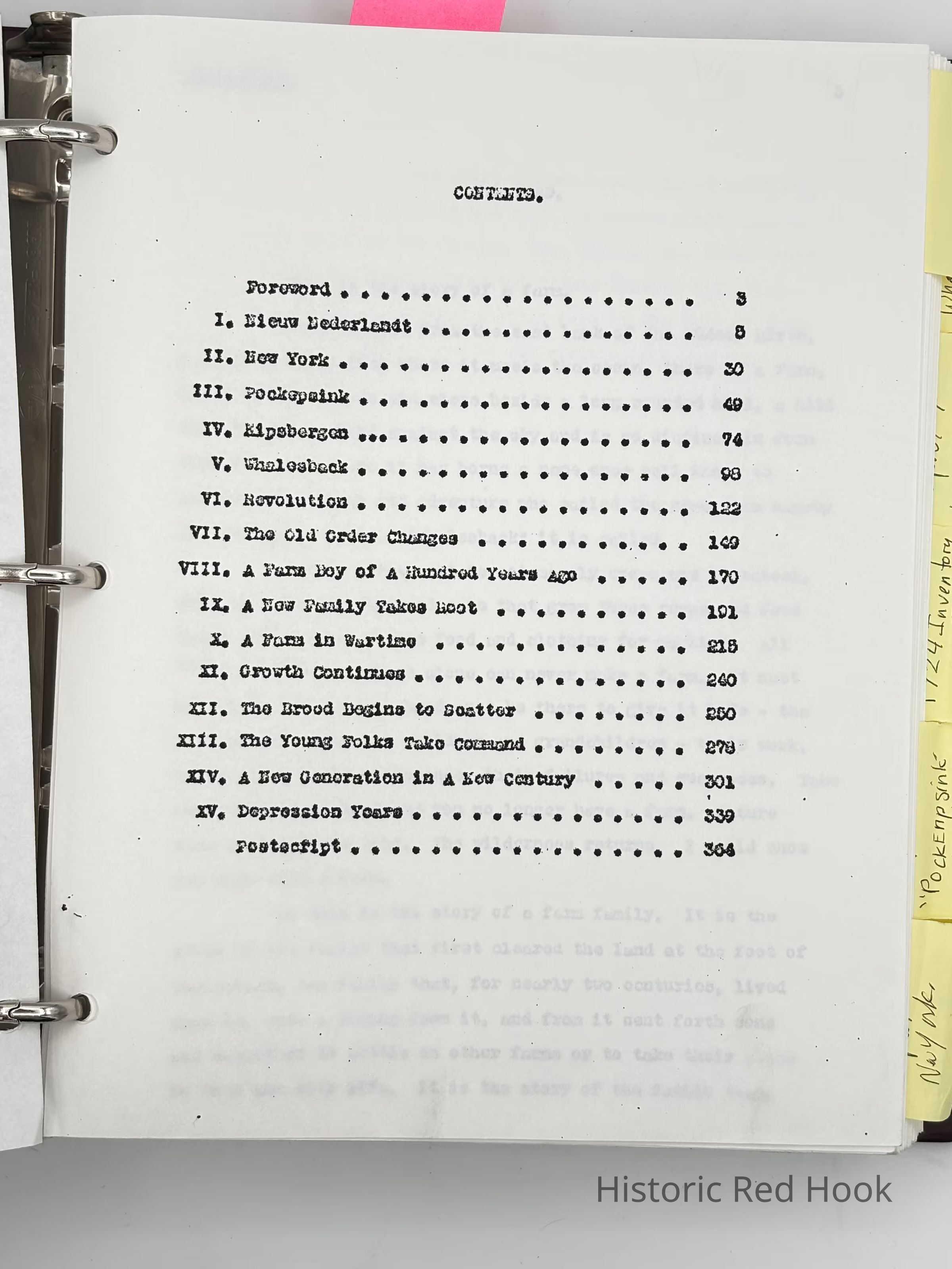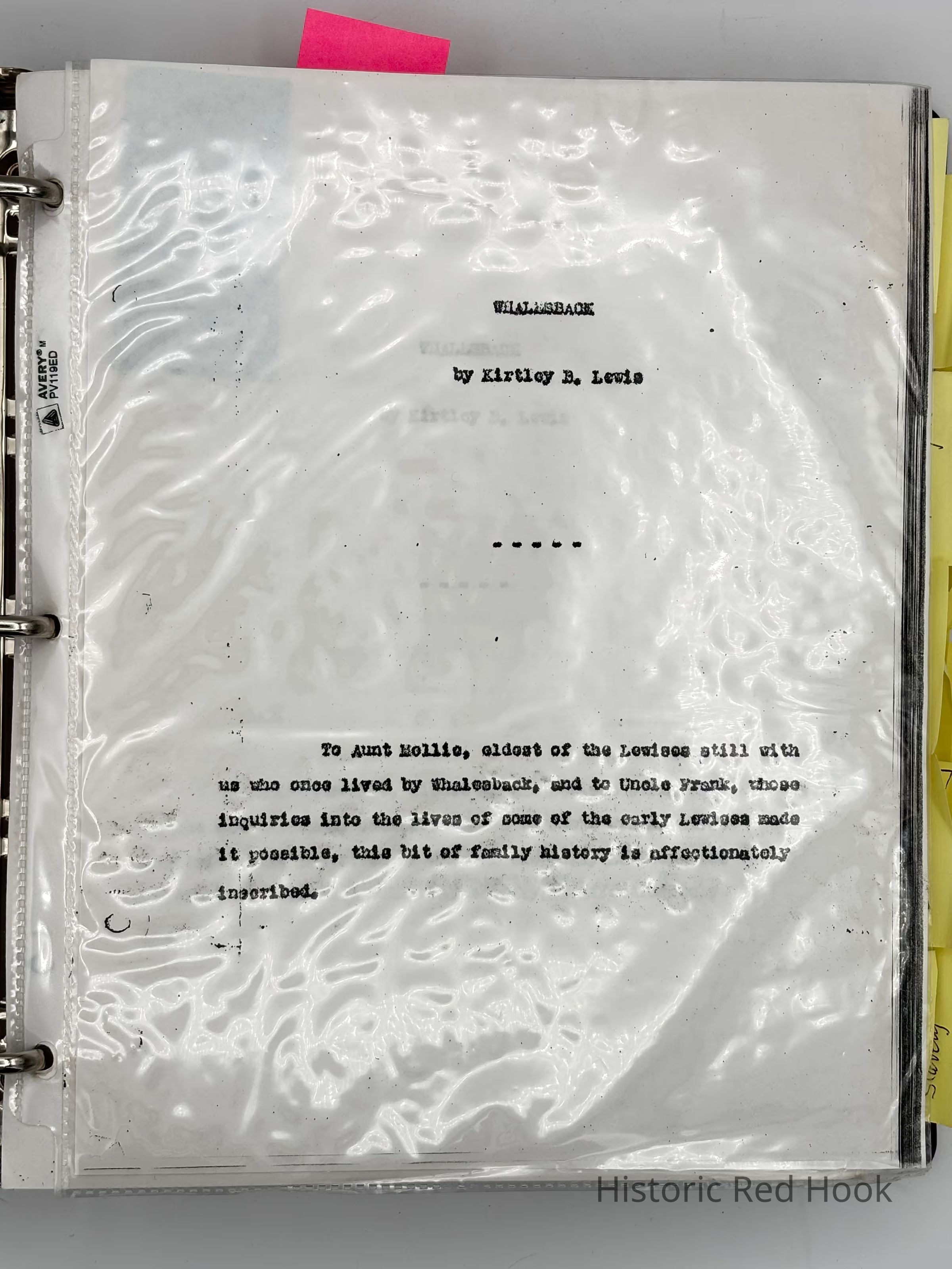 Typed manuscript in blue 3-ring binder telling the story of Whalesback Farm and the Lewis family that lived there.Collection