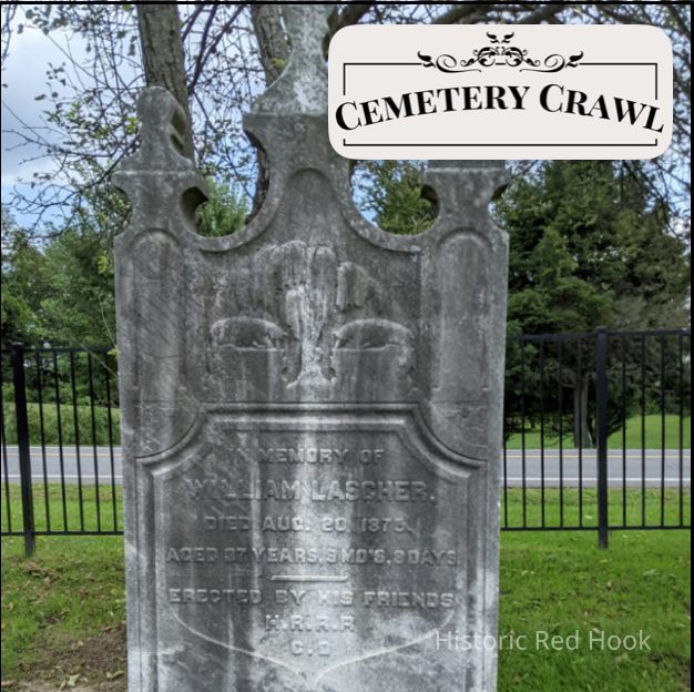 William’s sister Mary E. Lasher married Theodore Hoffman, and they are buried close by, next to the church. In the 1850 census of Red Hook, William, 16, appears as the only child residing with his parents, Philip and Betsy Lasher. Philip died before 1860, and Betsy passed away two years later.