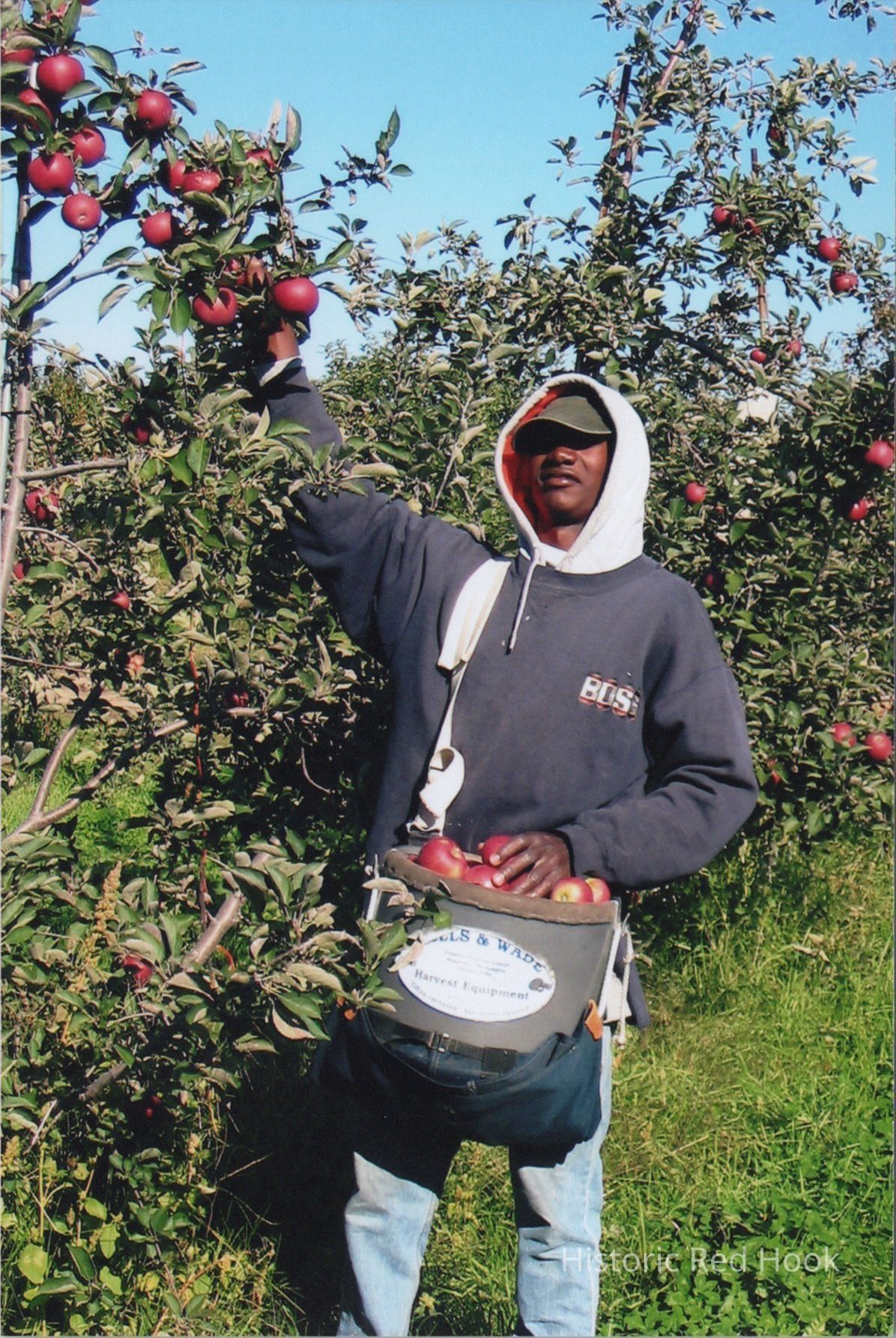 Worker at Mead Orchards Farm, picking apples, 2006