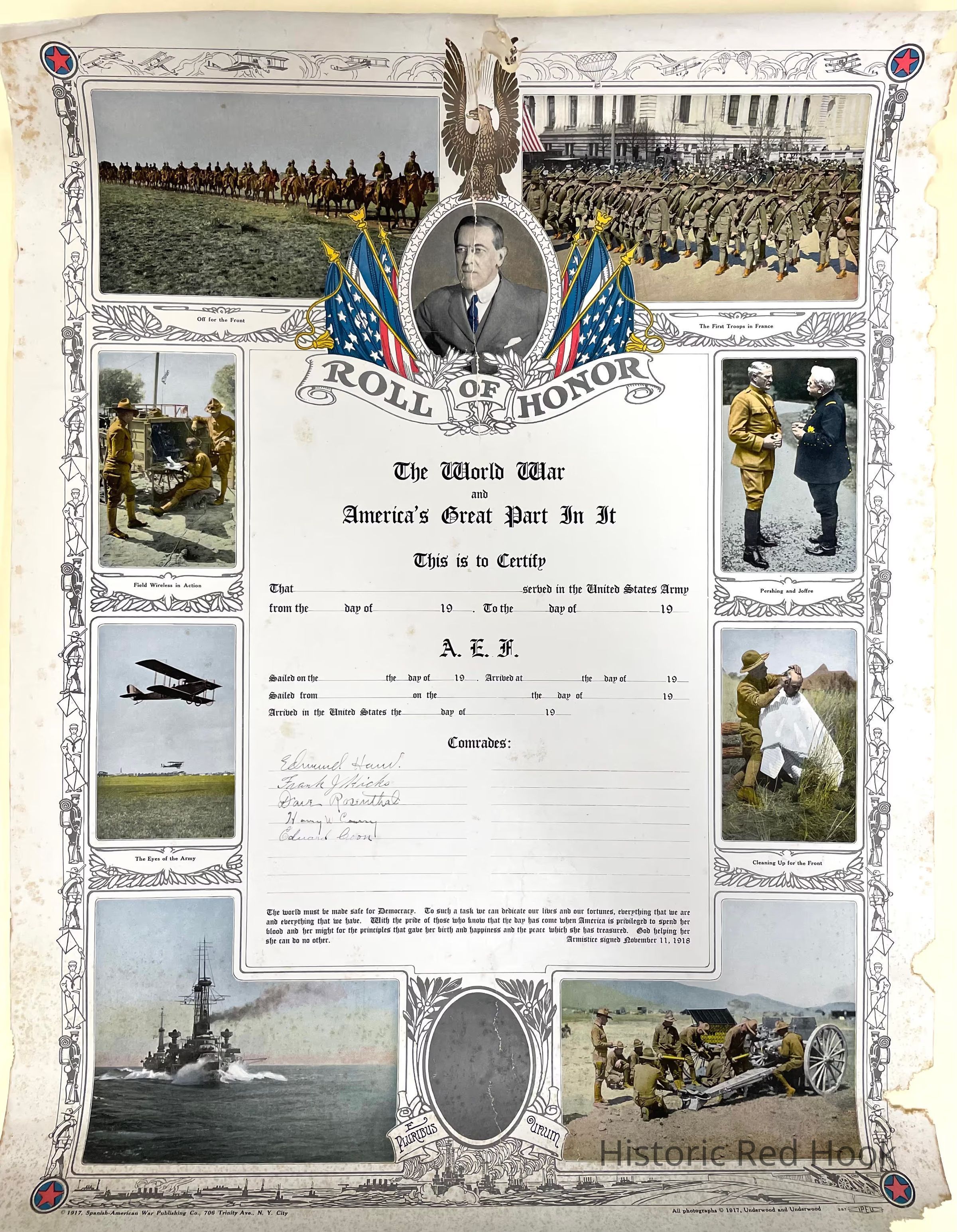 World War I Roll of Honor certificate, not entirely filled in. The names Edward Coon and four others are filled in.
