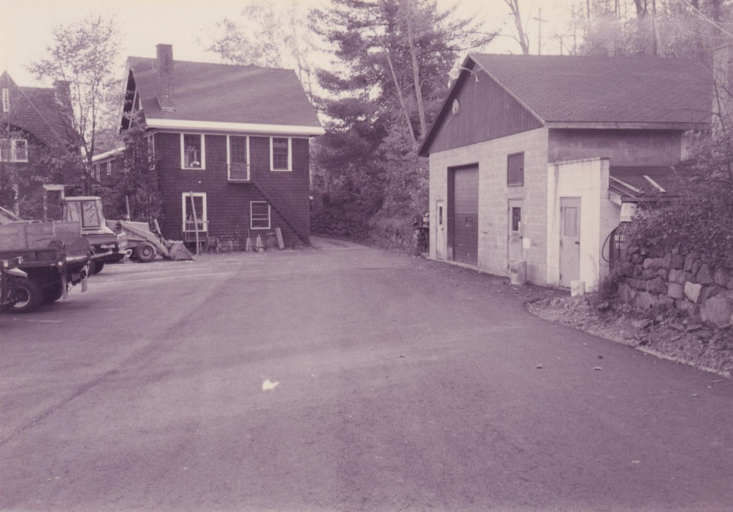 Black-and-white photograph of a road behind the main buildings at the American Management Association grounds, once Trudeau Sanatorium.