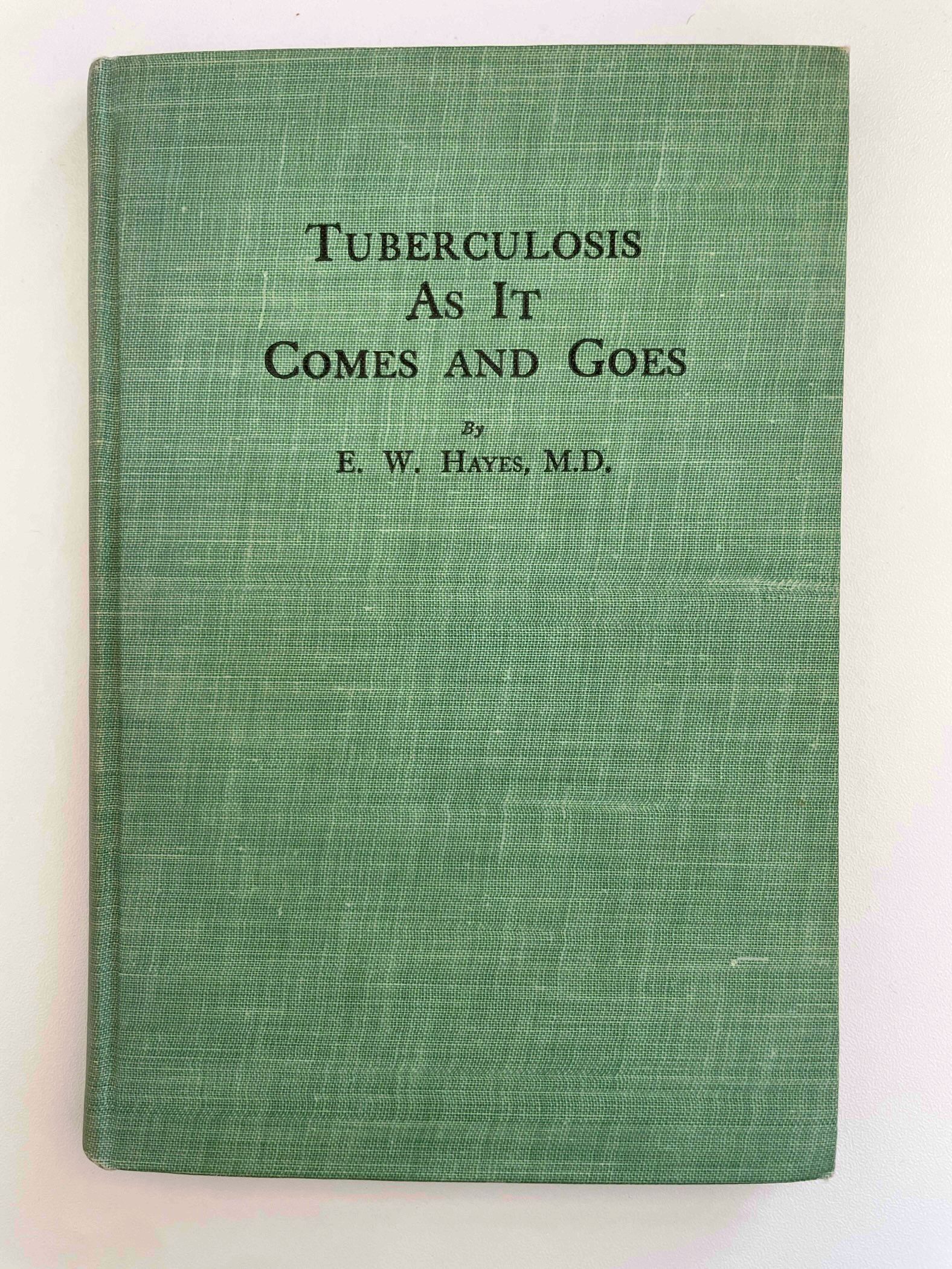 Tuberculosis as it Comes and Goes by E. W. Hayes, M. D., July 1924. Details the history, diagnosis, treatment, and outlook of tuberculosis treatment. Reprinted from the Journal of the Outdoor Life, Monrovia, CA. Hardcover, green cloth, 64p. Handwritten note inside, "Historical Collection from original Canyon Sanatorium Library." Stamped "San Mateo Sanatorium, Redwood City, CA."Lexicon