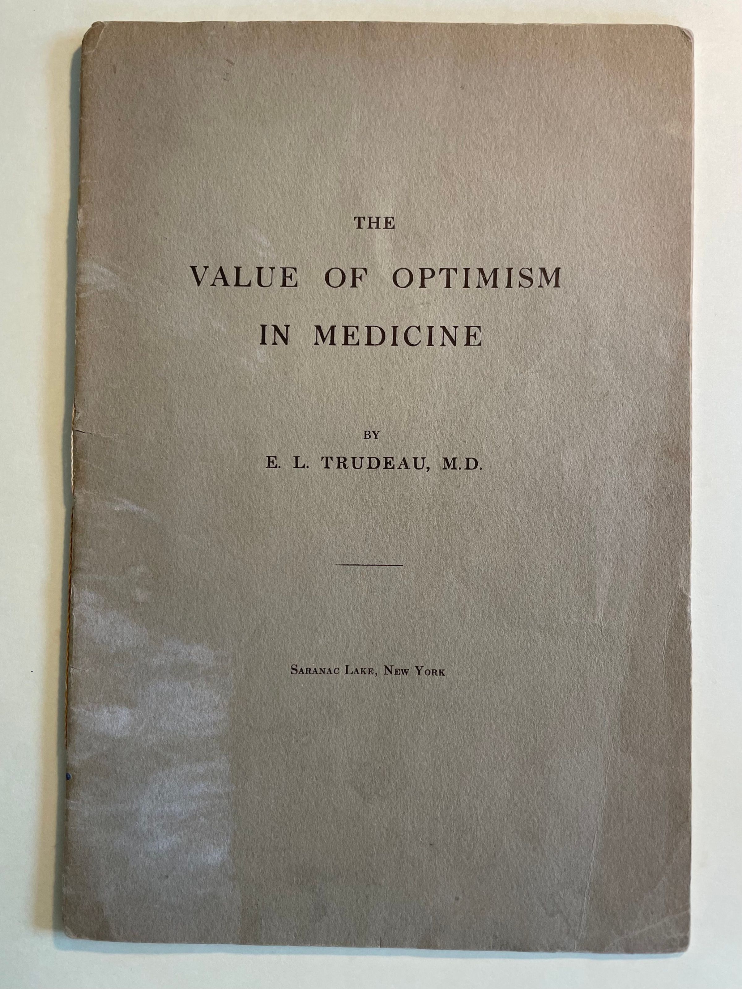 The Value of Optimism in Medicine by E. L. Trudeau, M. D. Printed pamphlet copy of the President's address given by Trudeau at the Eighth Congress of American Physicians and Surgeons, held in Washington, May 2, 1910. No printing date.