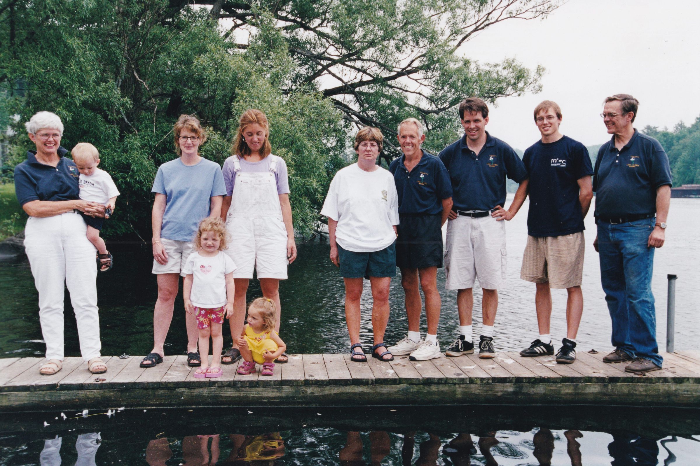 Color photograph of the Fogarty family outside of their businesses, Fogarty's Lake Flower Marina and Mountain Mist Custard. Portrait taken by Mary Lou Hanpeter Banks as part of her Soul Proprietor exhibition.