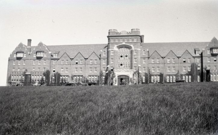Negative of the Cluett Building at the Trinity-Pawling School. Most likely taken by Henry or Mary Ives Baldwin. This item is not fully cataloged but has been uploaded so the image is publicly available; if you would like us to prioritize cataloging this item, please contact the HSL Collections team.