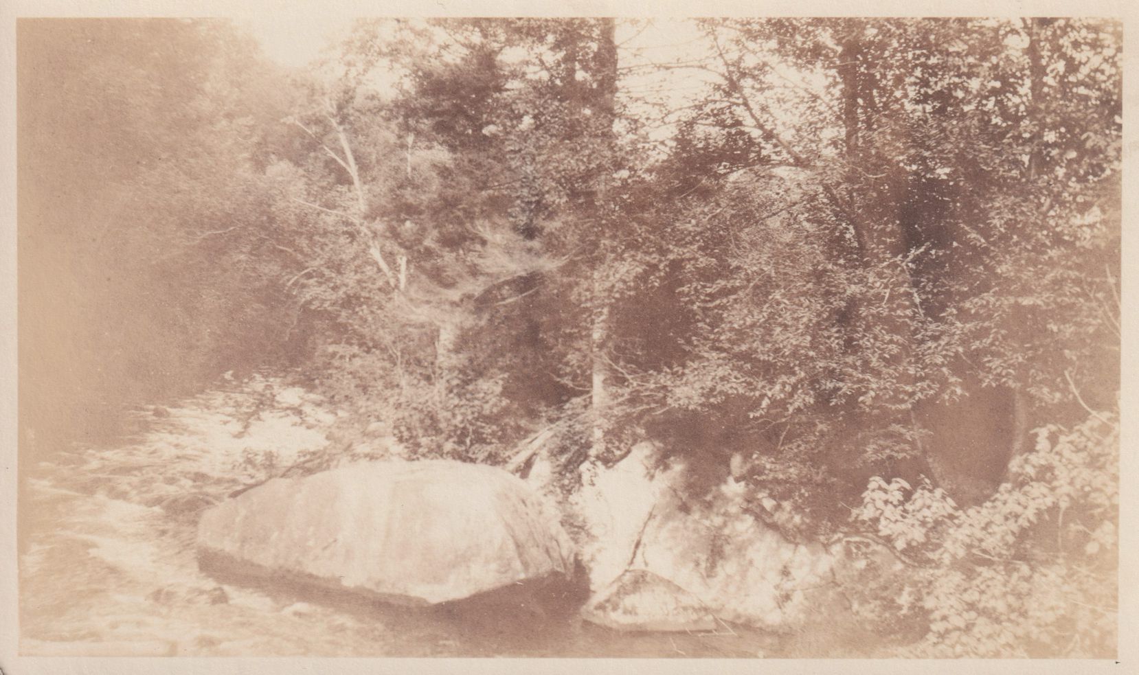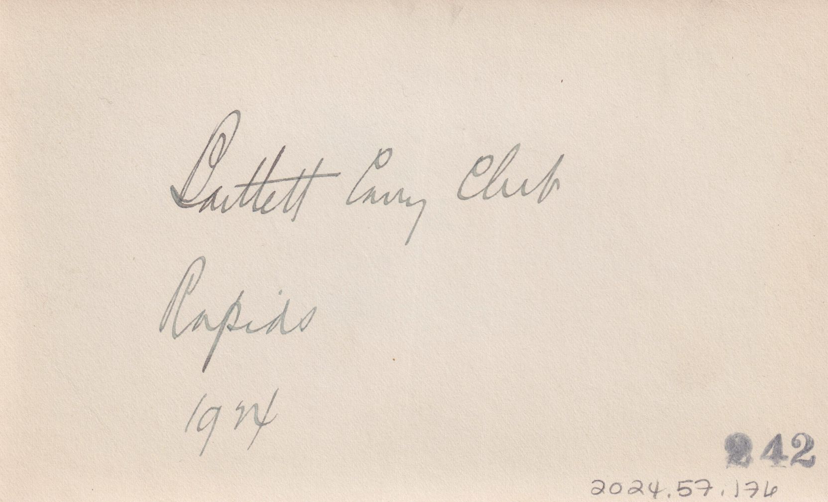 Black-and-White photograph of rapids on the Saranac River near Bartlett Carry Club. Handwritten note on reverse reads, “Bartlett Carry Club, Rapids. 1924.”