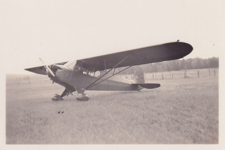 Black-and-White photograph of a monoplane parked in a field. The photograph was likely printed by Kollecker's Kodak and Gift Shop.