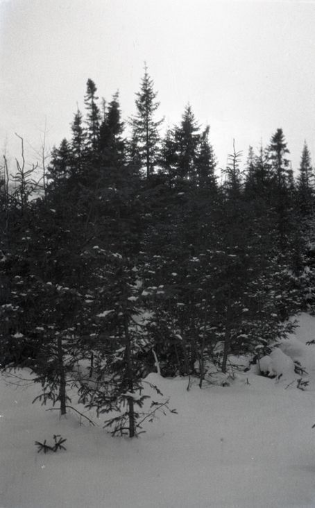 Negative of a forest in the winter. Most likely taken by Mary Ives Baldwin. This item is not fully cataloged but has been uploaded so the image is publicly available; if you would like us to prioritize cataloging this item, please contact the HSL Collections team.