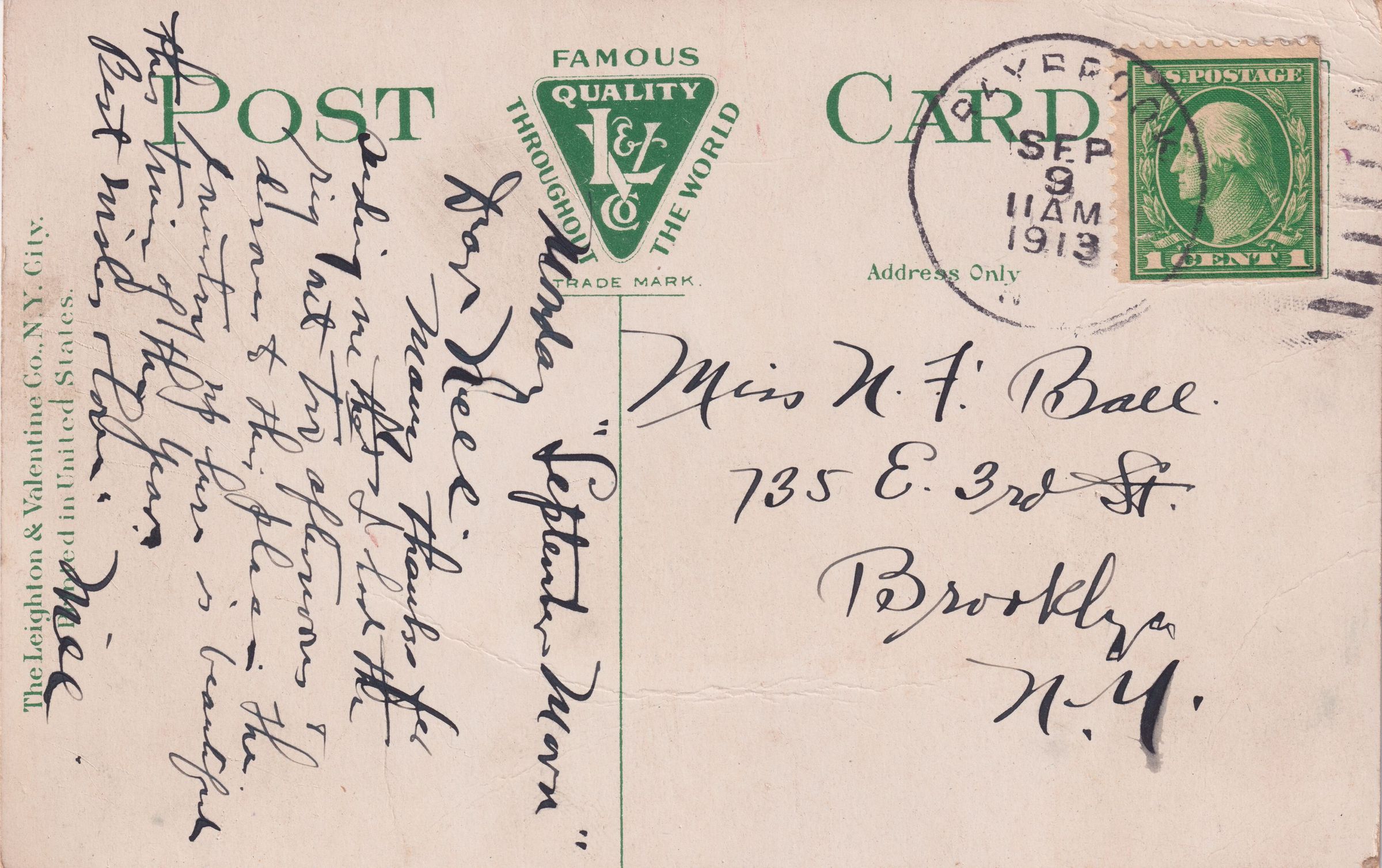 September 9, 1913Sender