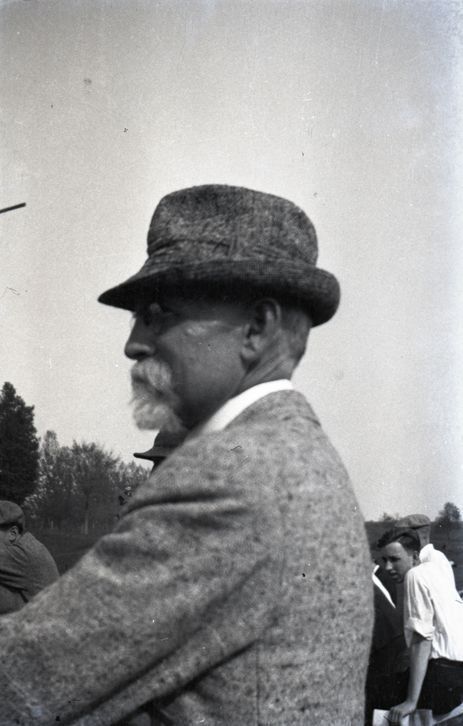 Negative of an unidentified man in side profile. He's wearing a suit and brimmed hat. Most likely taken by Mary Ives Baldwin. This item is not fully cataloged but has been uploaded so the image is publicly available; if you would like us to prioritize cataloging this item, please contact the HSL Collections team.