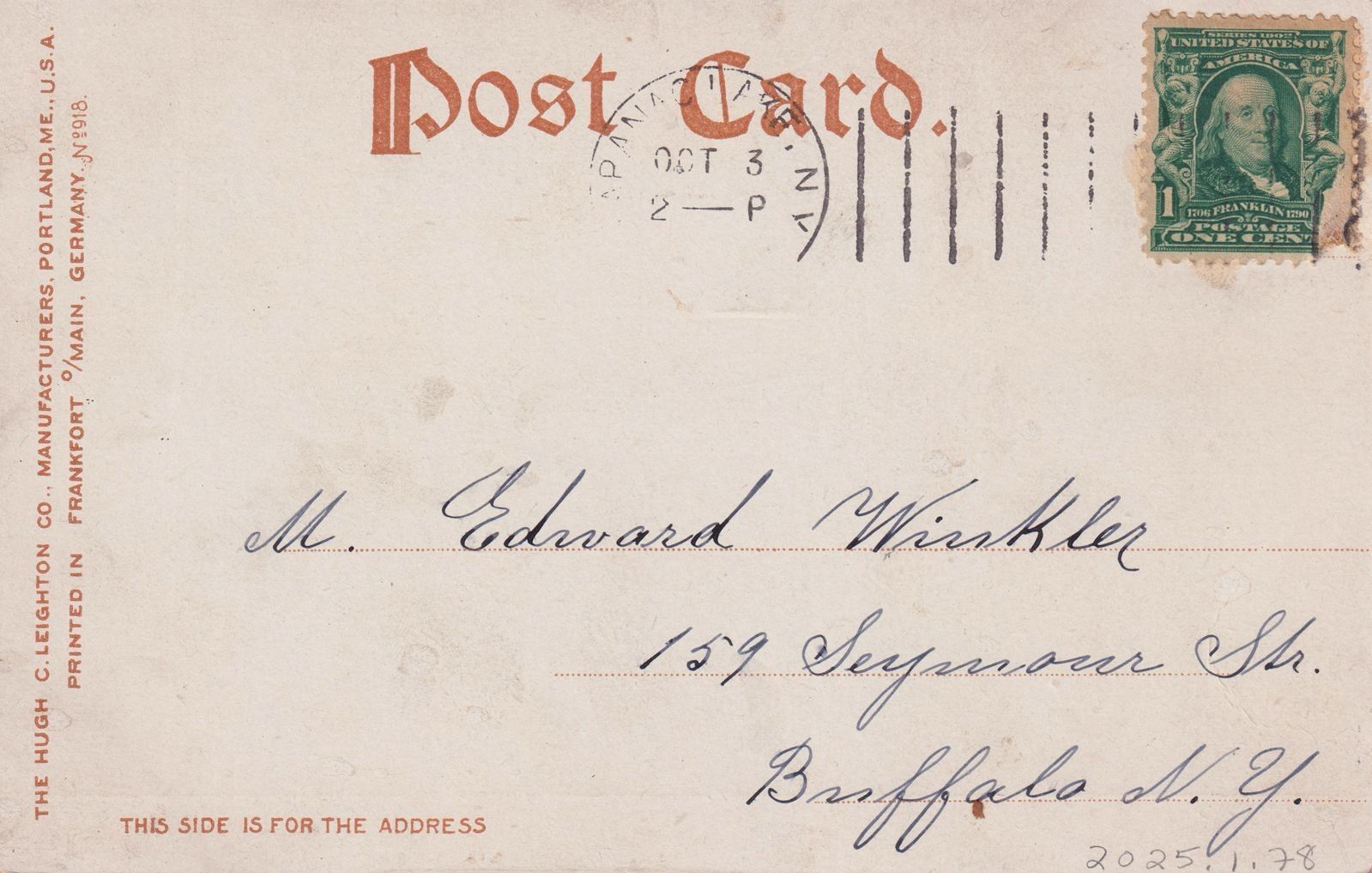 [Part of a group of cards mailed from various writers in Saranac Lake to Mrs. N. J. Winkler of Buffalo. See 2025.1.77 - 2025.1.84 for the rest of the cards.]Subject Place