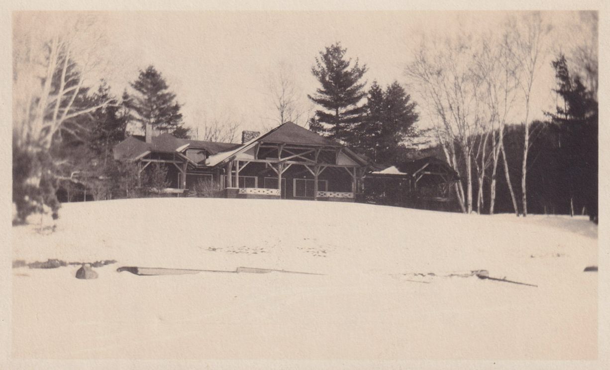 Black-and-White photograph of an unidentified building in the snow. Taken by Harvey Harrison Bird while curing in Saranac Lake, 1920-1921.