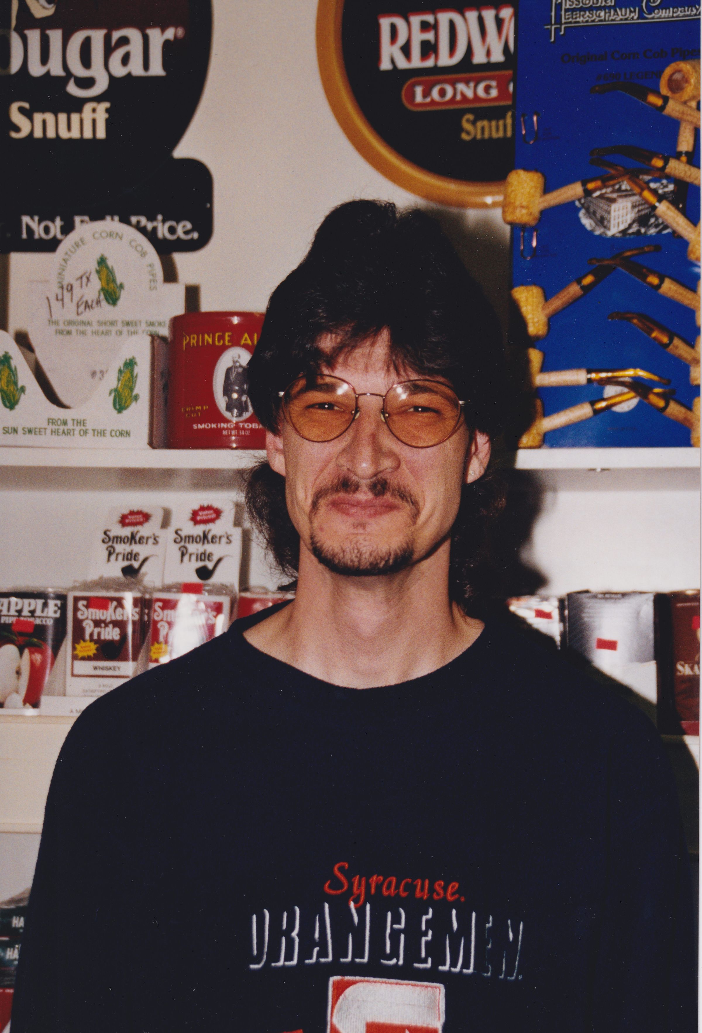 Color photograph of Dwayne Larabie inside of his business, Cigarette Warehouse. Portrait taken by Mary Lou Hanpeter Banks as part of her Soul Proprietor exhibition.