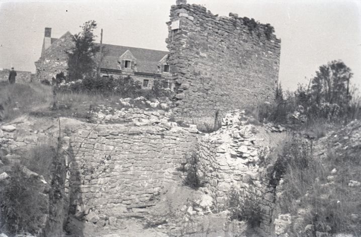 Negative of partially collapsed stone walls and a stone building at Fort Ticonderoga. Most likely taken by Mary Ives Baldwin. This item is not fully cataloged but has been uploaded so the image is publicly available; if you would like us to prioritize cataloging this item, please contact the HSL Collections team.