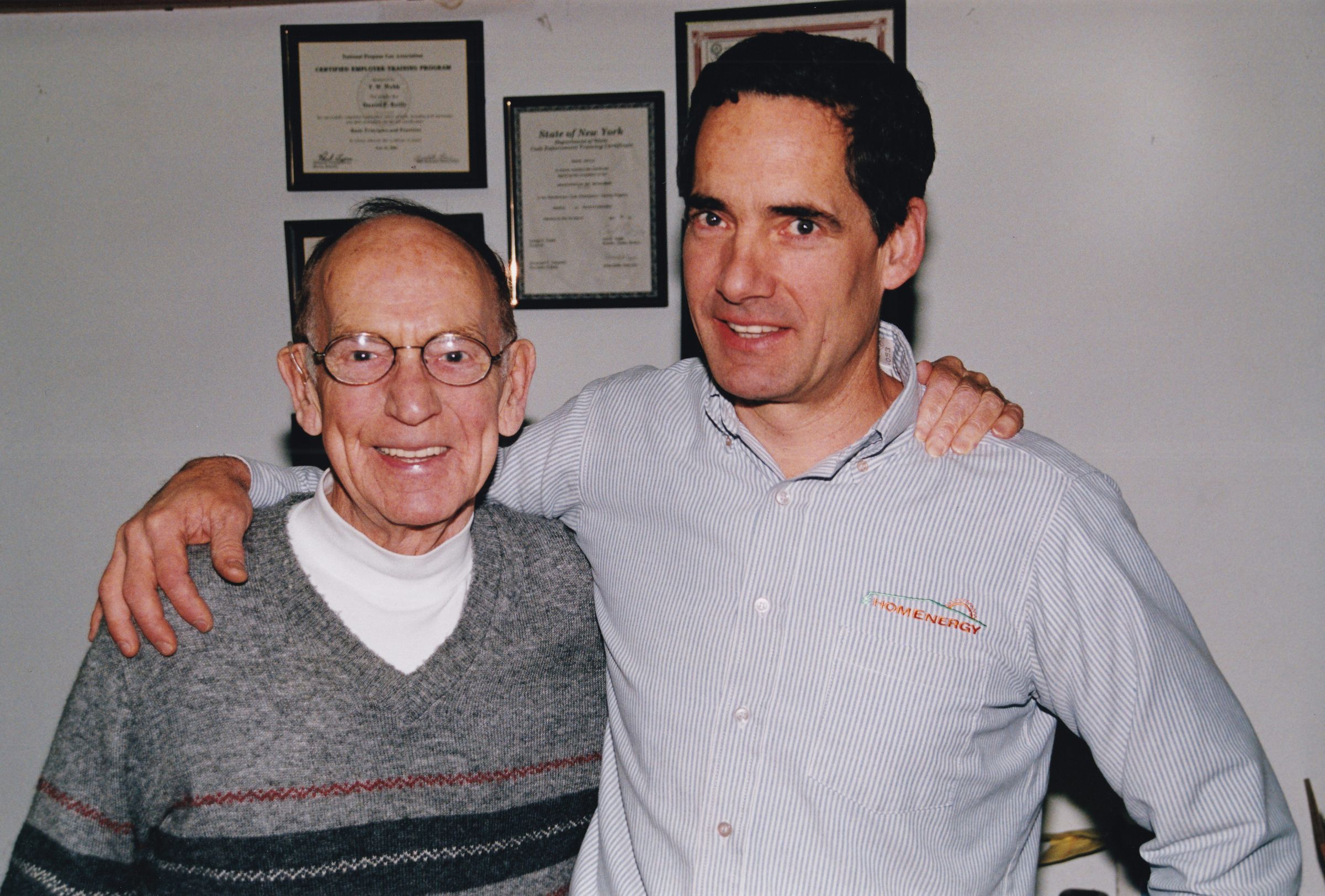 Color photograph of Joe and Dan Reilly inside of their business, HomEnergy Services. Portrait taken by Mary Lou Hanpeter Banks as part of her Soul Proprietor exhibition.