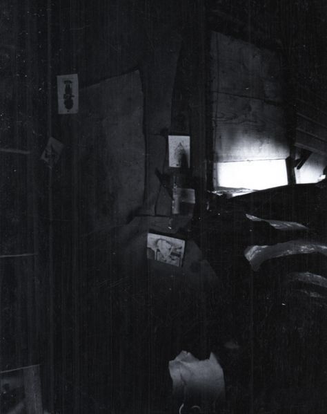 Negative of the inside of a dormitory room, taken with the blinds most of the way down so it is dark in the room. Most likely taken by Mary Ives Baldwin. This item is not fully cataloged but has been uploaded so the image is publicly available; if you would like us to prioritize cataloging this item, please contact the HSL Collections team.