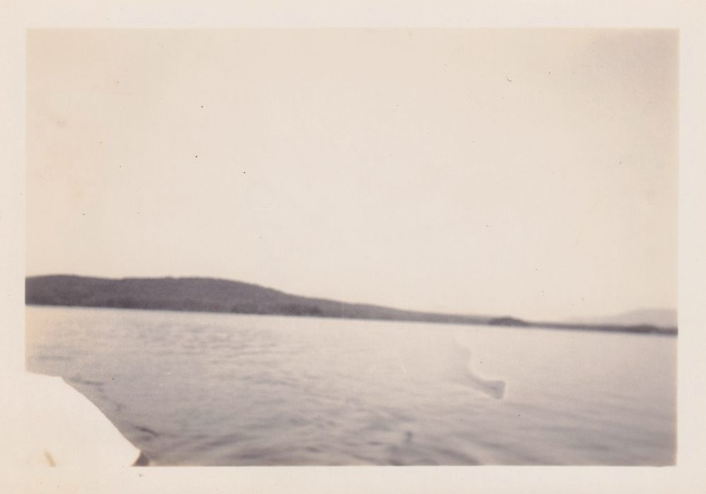 Black-and-White photograph of an unidentified body of water. Was in a Kollecker Kodak & Gift Shop envelope marked, "Hoe, Friday Aug 23 1940." Photograph was developed by Kollecker's Kodak and Gift Shop. Negative is 2024.2.37.6.