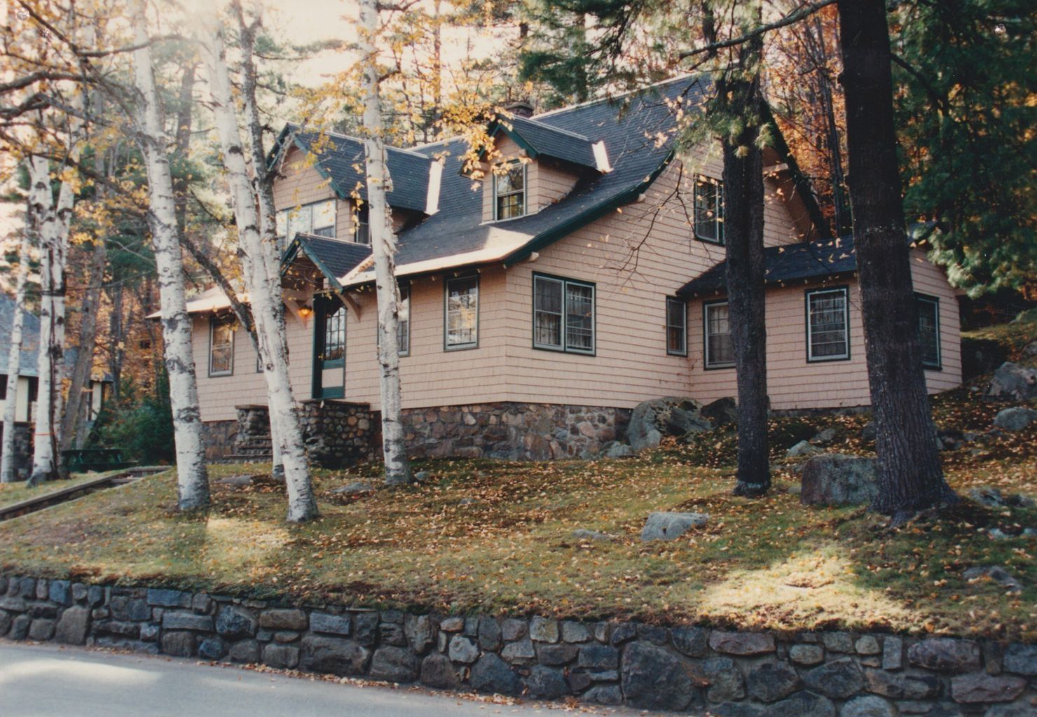 Color photograph of a building surrounded by fall foliage. The building was the Radiographer's Cottage when it was part of the Trudeau Sanatorium, but at the time of the photograph it was part of the American Management Association grounds.