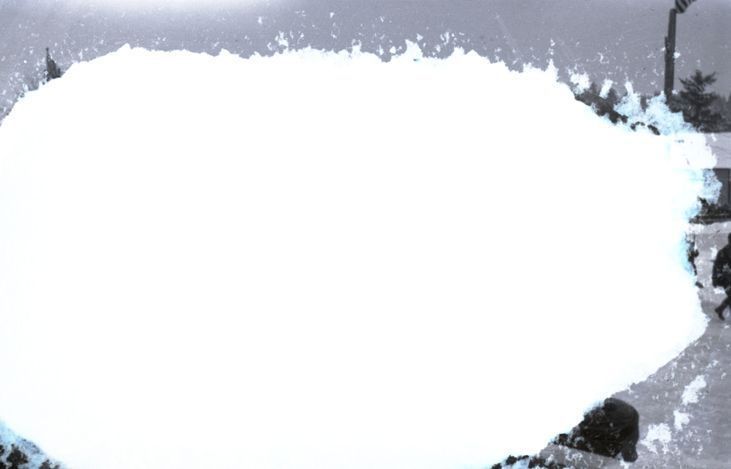 Negative of most likely a Winter Carnival scene but a bit of paper is stuck to the surface of the negative, obscuring most of the picture. An ice skater can be seen at the right edge of the negative. Most likely taken by Mary Ives Baldwin. This item is not fully cataloged but has been uploaded so the image is publicly available; if you would like us to prioritize cataloging this item, please contact the HSL Collections team.