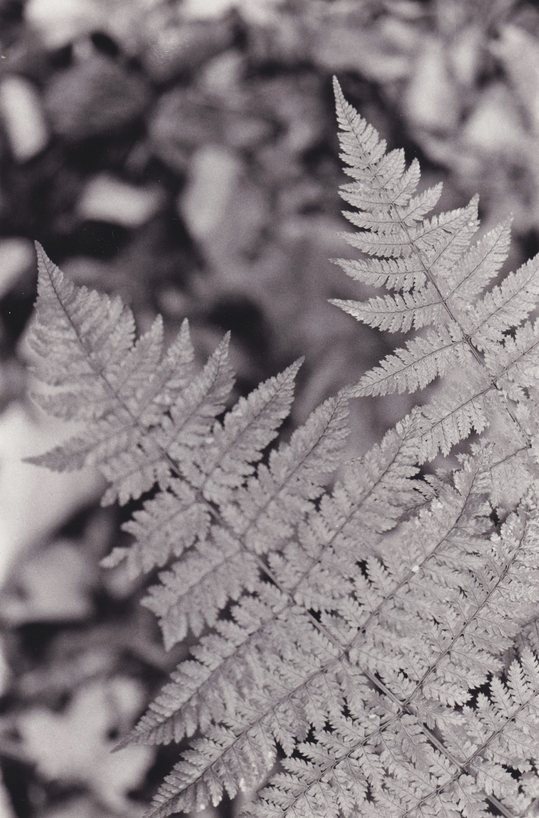 Black-and-White photograph of ferns in the woods at Bartlett Carry Club.