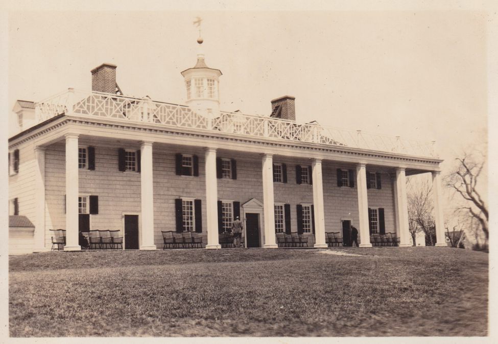 Black-and-White photograph of Mt. Vernon. The Jones Family took a long road trip in 1934, this is likely from their travels. Part of album 2024.21.1, kept by Amy Jones and David Blair Jones c. 1930-1934.