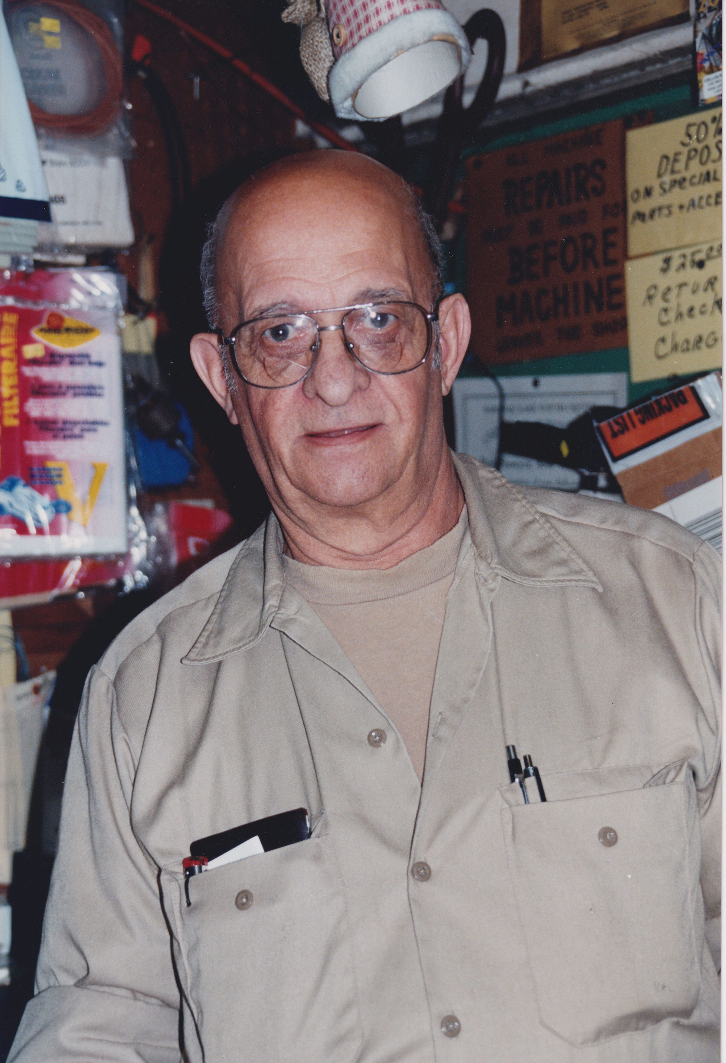 Color photograph of Robert Sawyer inside of his business, Sew-Vac Shop. Portrait taken by Mary Lou Hanpeter Banks as part of her Soul Proprietor exhibition.