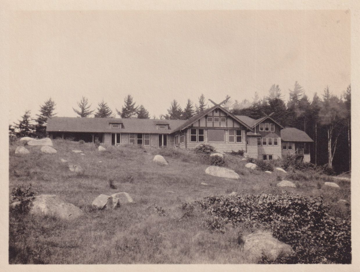 Black-and-White photograph of a large cottage seen from downhill. "1925" is handwritten on reverse.