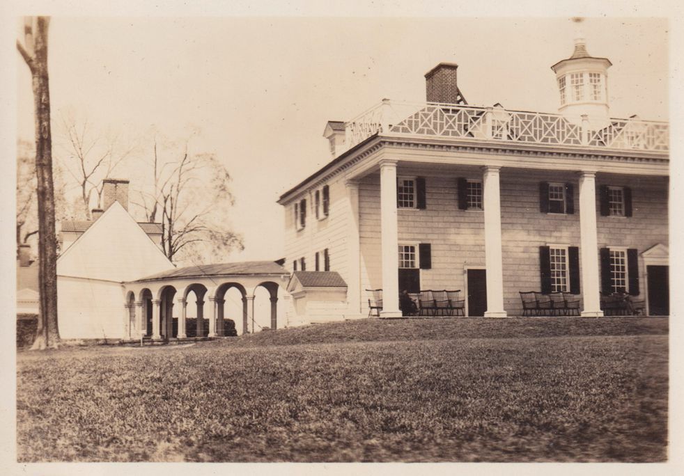 Black-and-White photograph of Mt. Vernon. The Jones Family took a long road trip in 1934, this is likely from their travels. Part of album 2024.21.1, kept by Amy Jones and David Blair Jones c. 1930-1934.