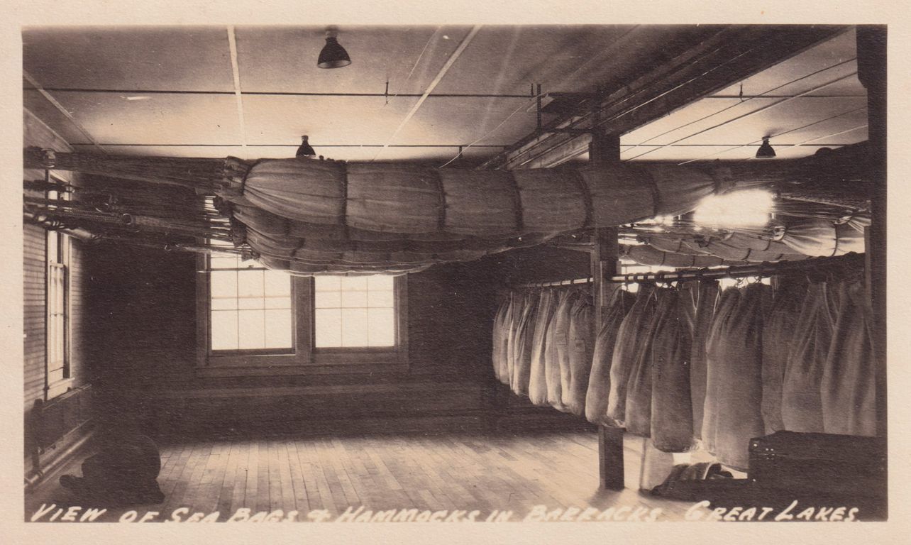 View of Sea Bags & Hammocks in Barracks, Great Lakes