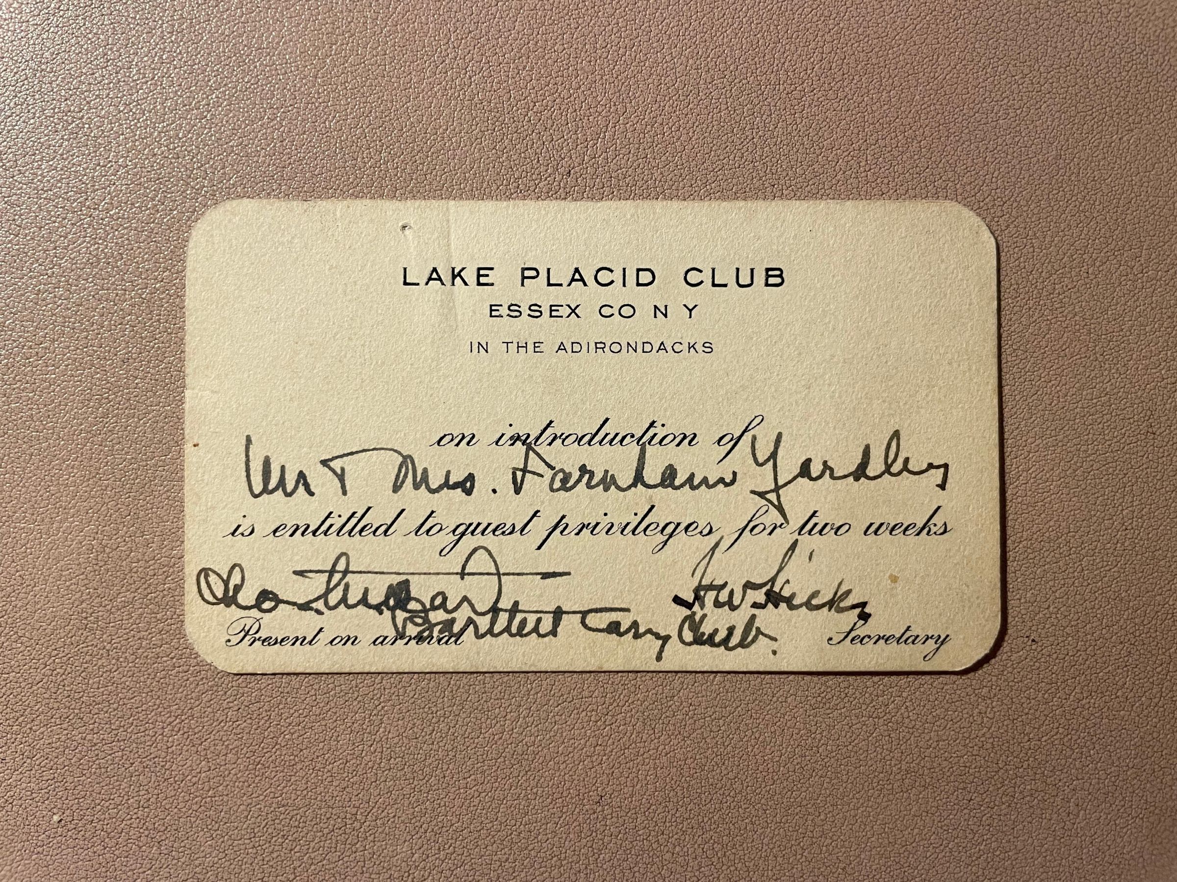 Guest membership card for the Lake Placid Club, issued by the Bartlett Carry Club/Farnham Yardley.