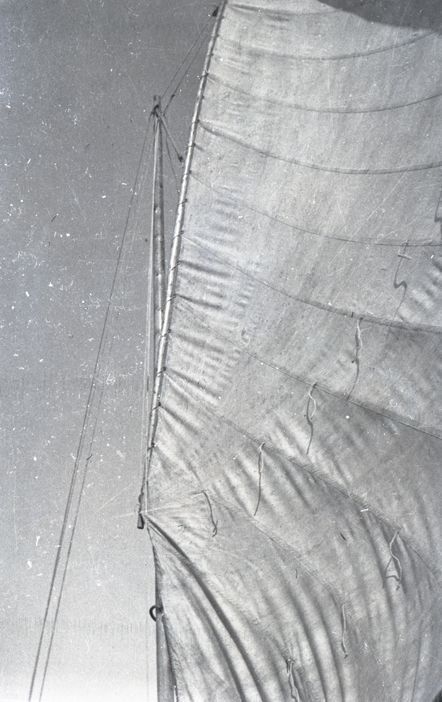 Negative of the sail on an iceboat, taken from the ground. Most likely taken by Mary Ives Baldwin. This item is not fully cataloged but has been uploaded so the image is publicly available; if you would like us to prioritize cataloging this item, please contact the HSL Collections team.
