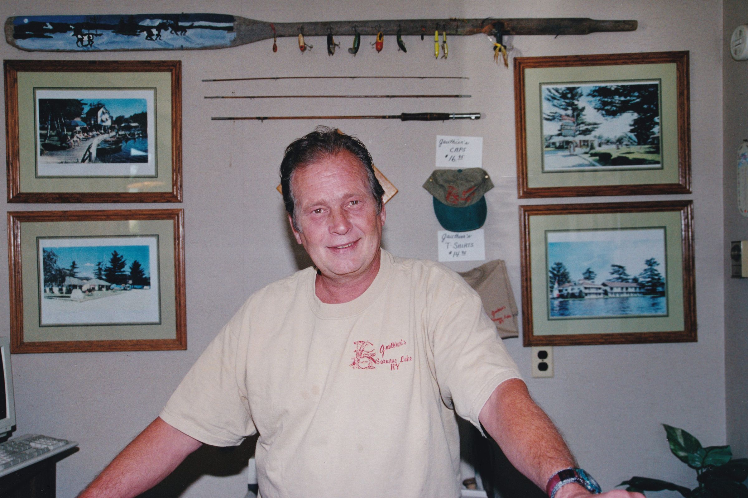 Color photograph of Douglas Brownell inside of his business, Gauthier's Saranac Lake Inn. Portrait taken by Mary Lou Hanpeter Banks as part of her Soul Proprietor exhibition.