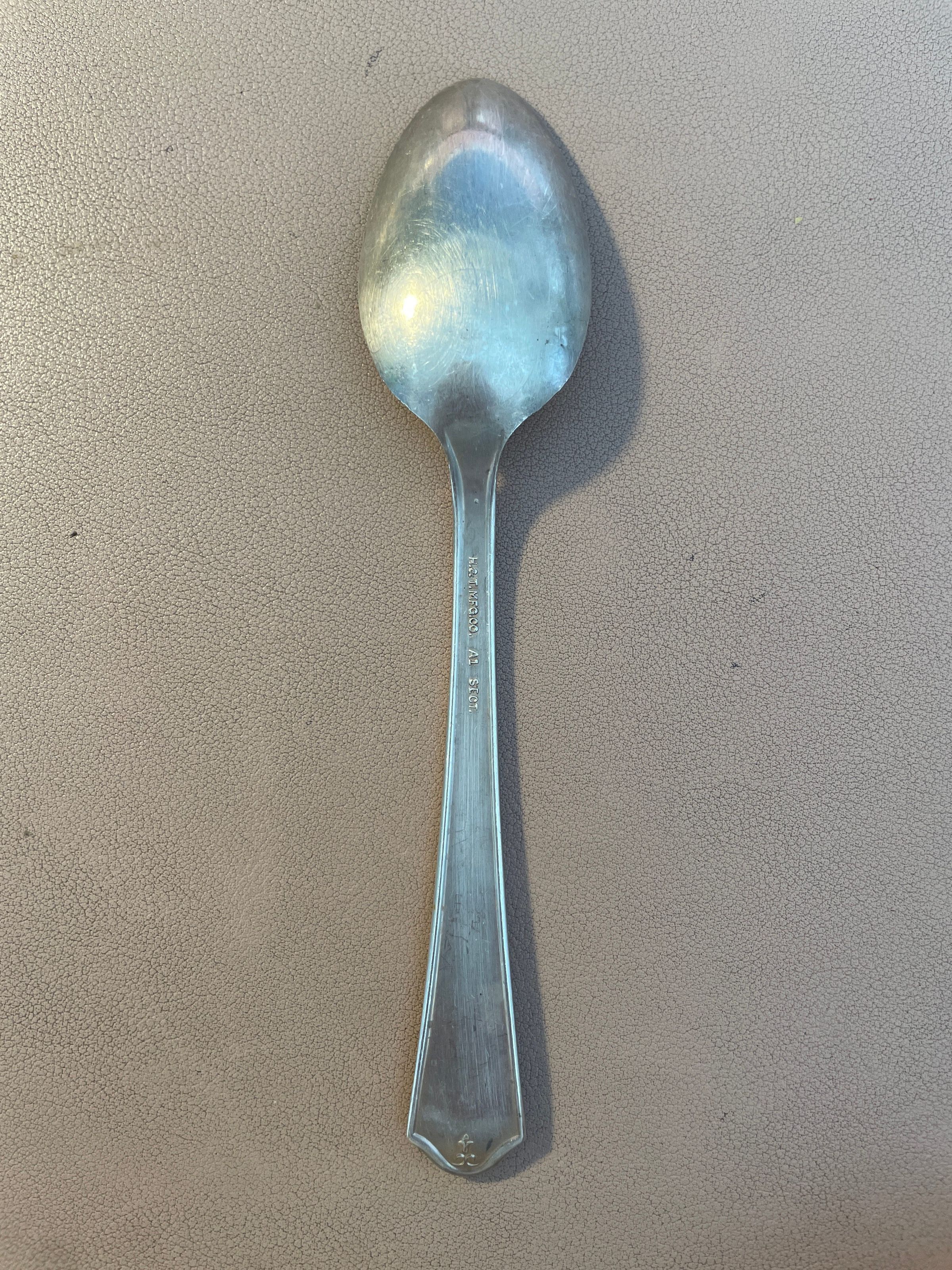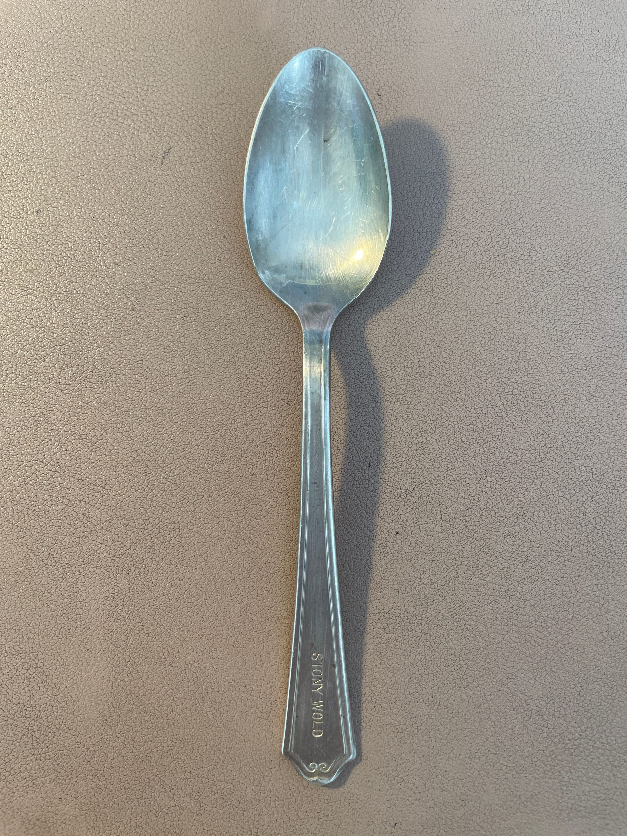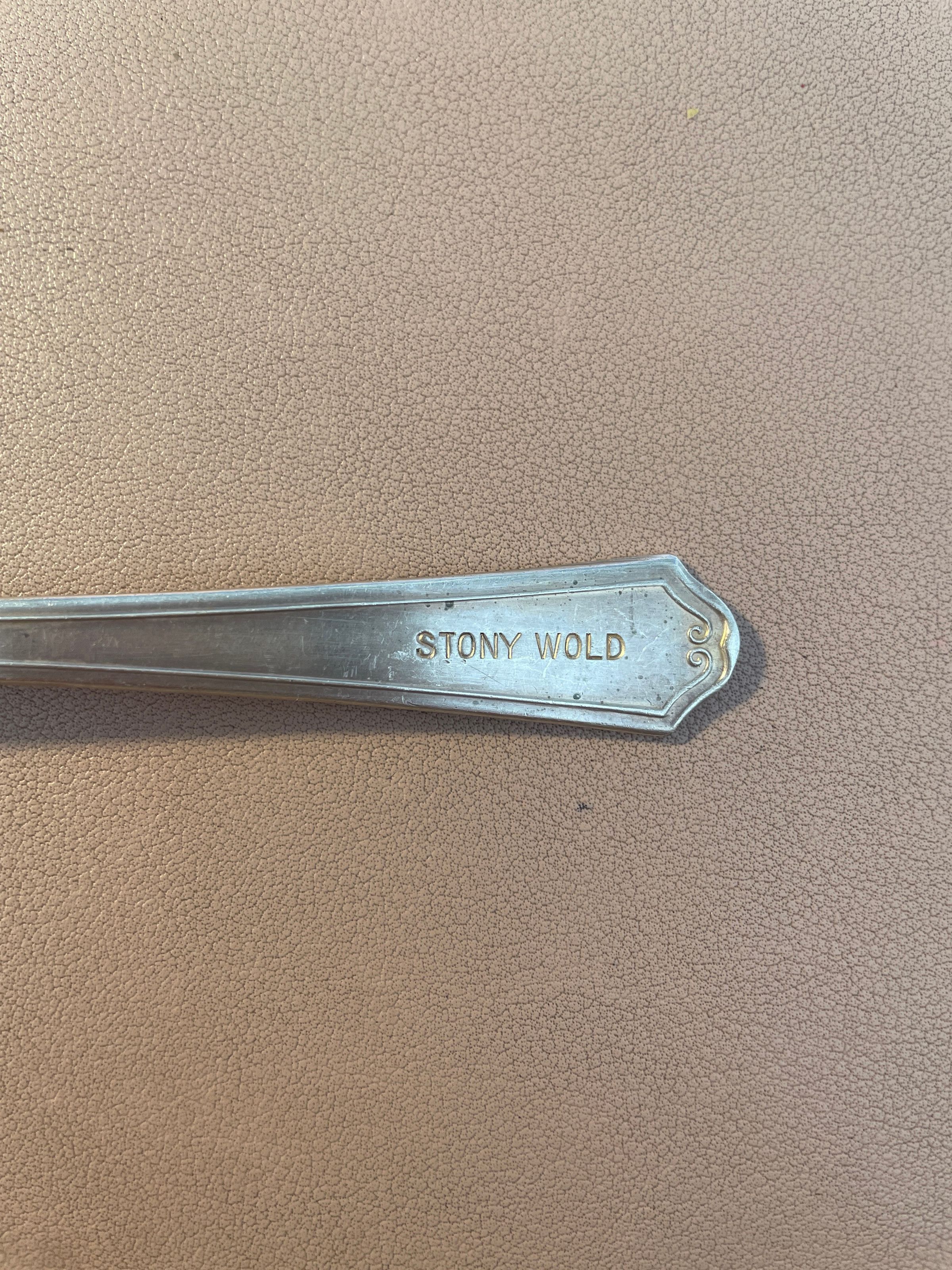 Silver teaspoon, with "Stony Wold," stamped on the handle. Stamped "H. & T. Mfg. Co.," on back of handle.