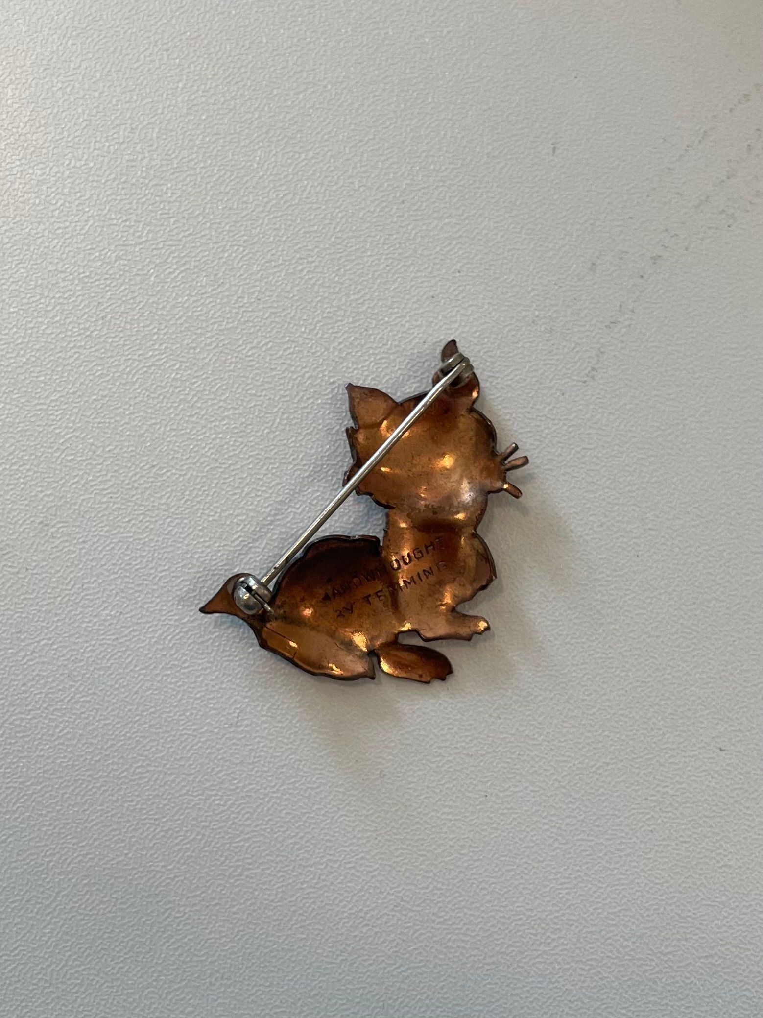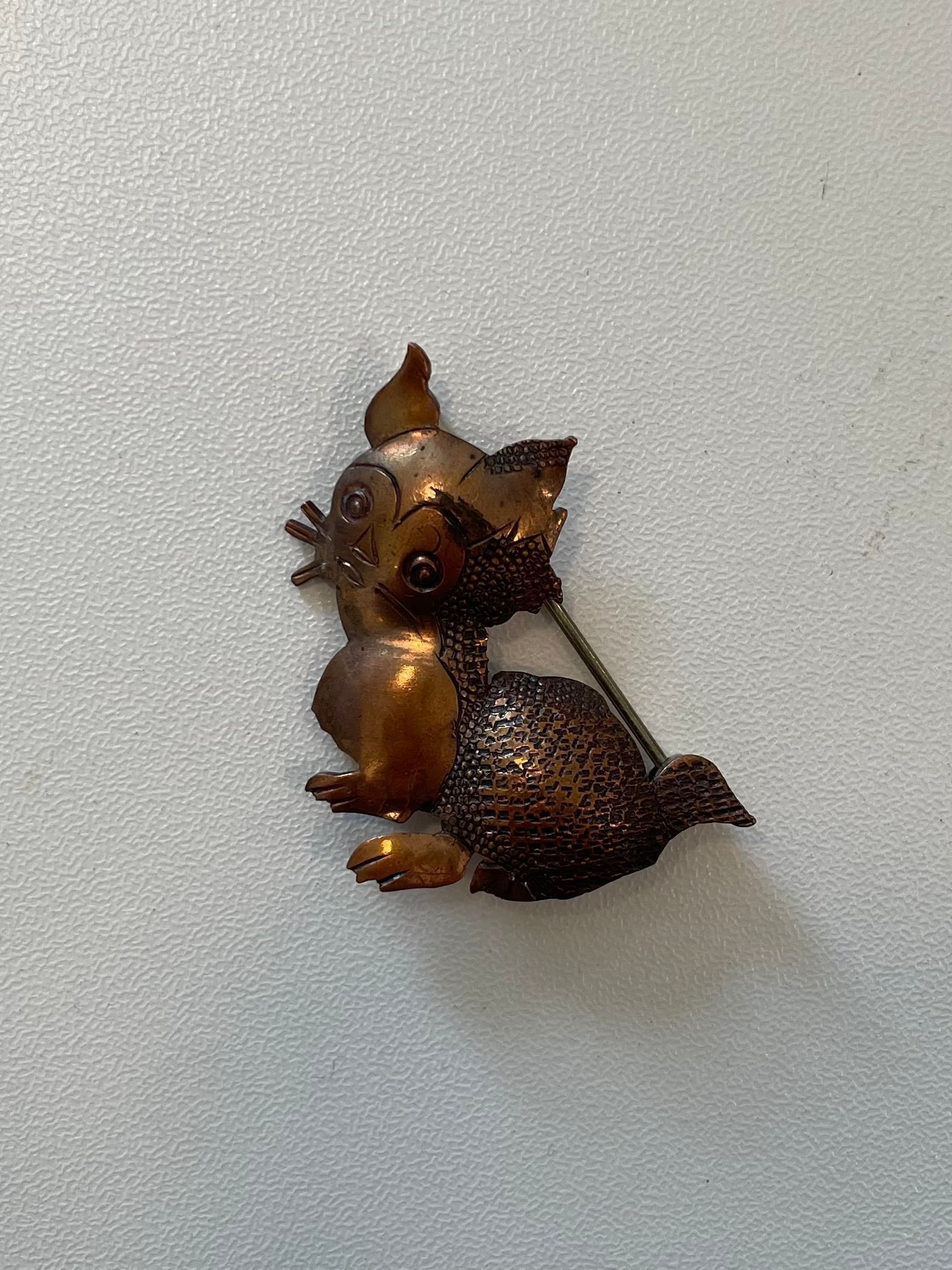 Copper cat pin by Temming. Bar backing. Stamped "Handwrought by Temming" on reverse.