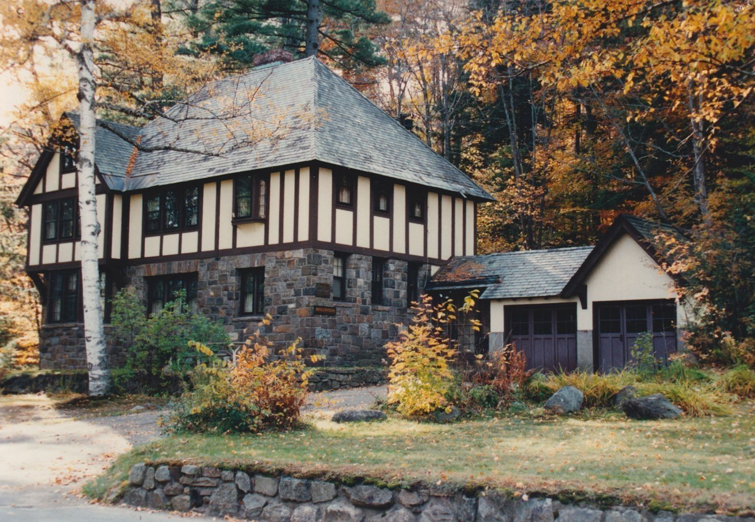 Color photograph of a building surrounded by fall foliage. The building was the Lorna Valentine Mallinson Memorial Cottage when it was part of the Trudeau Sanatorium, but at the time of the photograph it was part of the American Management Association grounds.