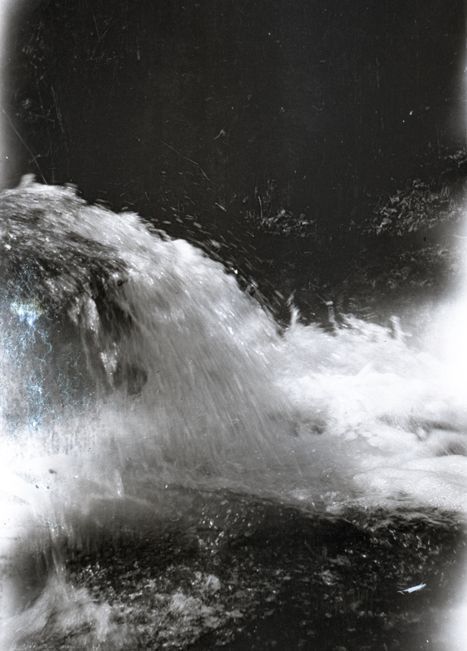 Negative of water flowing over rocks and into rapids in a forest. Most likely taken by Mary Ives Baldwin. This item is not fully cataloged but has been uploaded so the image is publicly available; if you would like us to prioritize cataloging this item, please contact the HSL Collections team.