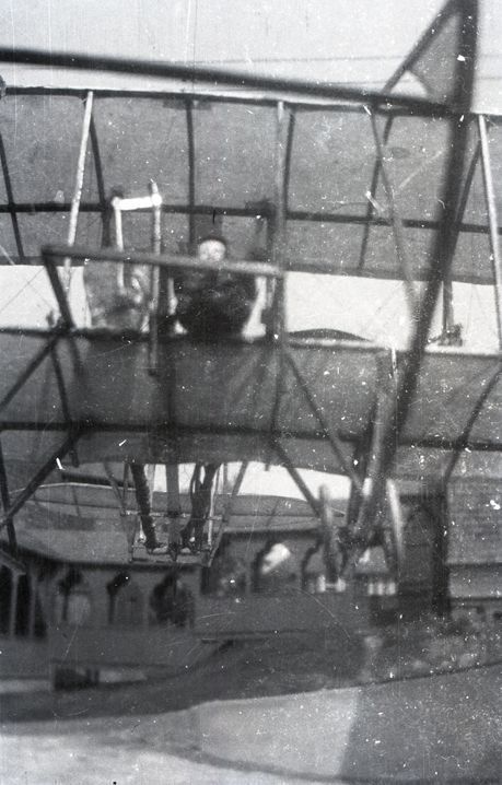Negative of a model glider in the yard between the Baldwin House and St. Luke's Church. Most likely taken by Mary Ives Baldwin. This item is not fully cataloged but has been uploaded so the image is publicly available; if you would like us to prioritize cataloging this item, please contact the HSL Collections team.