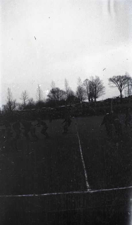 Negative of a football game taken from the sidelines. Most likely taken by Mary Ives Baldwin. This item is not fully cataloged but has been uploaded so the image is publicly available; if you would like us to prioritize cataloging this item, please contact the HSL Collections team.