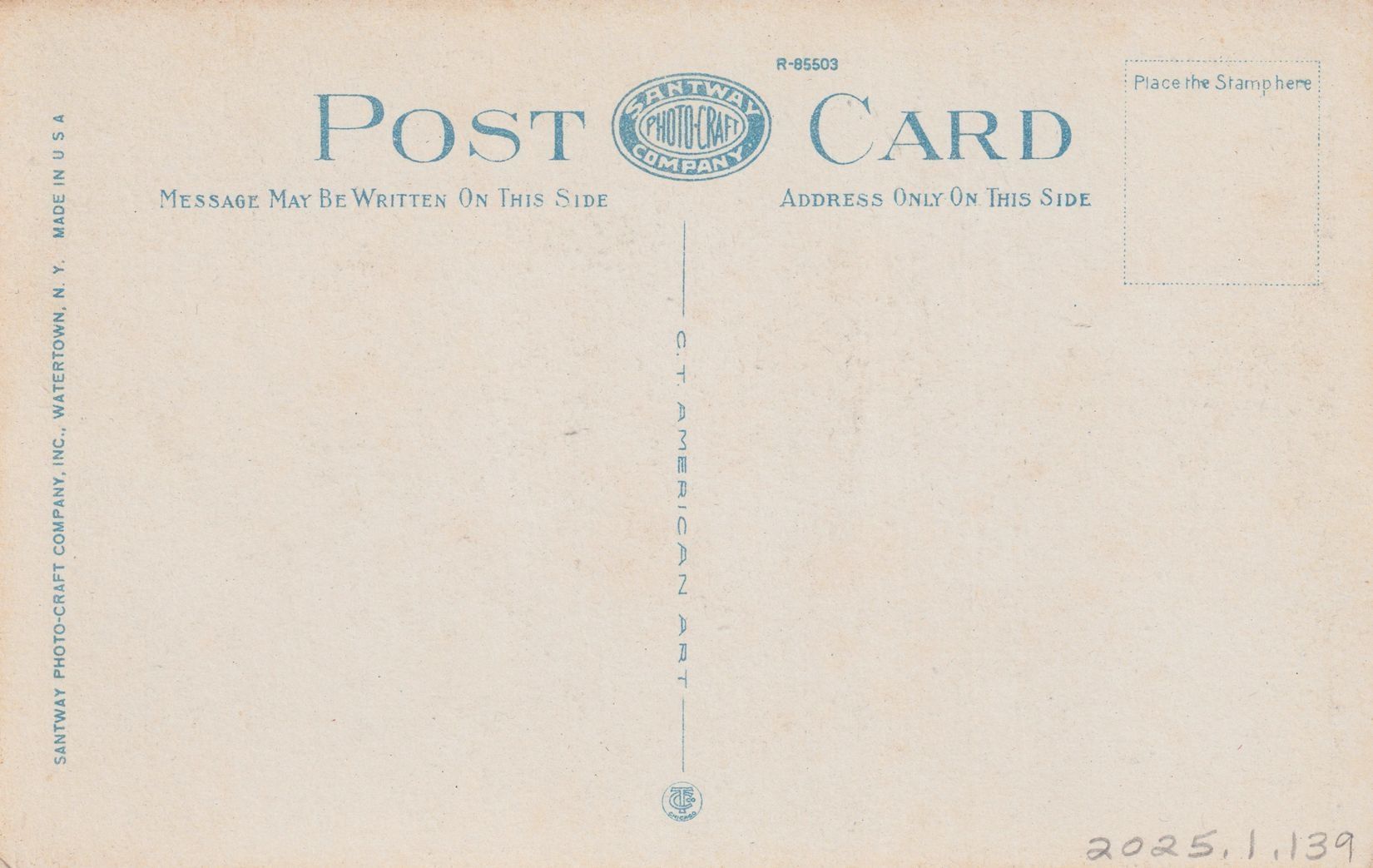 Color postcard showing speed skaters on the ice at Pontiac Bay. Spectators can be seen in the stands behind them. Printed caption on front reads, "Skating Races, Saranac Lake, N.Y., The Metropolis of the Adirondacks." Printed by the Santway Photo-Craft Company, Inc., Watertown, NY. Unused, divided back, white border.Subject Place