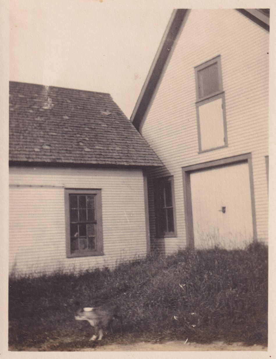 Black-and-White photograph of an unidentified house, building, or barn. The photograph was likely printed by Kollecker's Kodak and Gift Shop.Collection