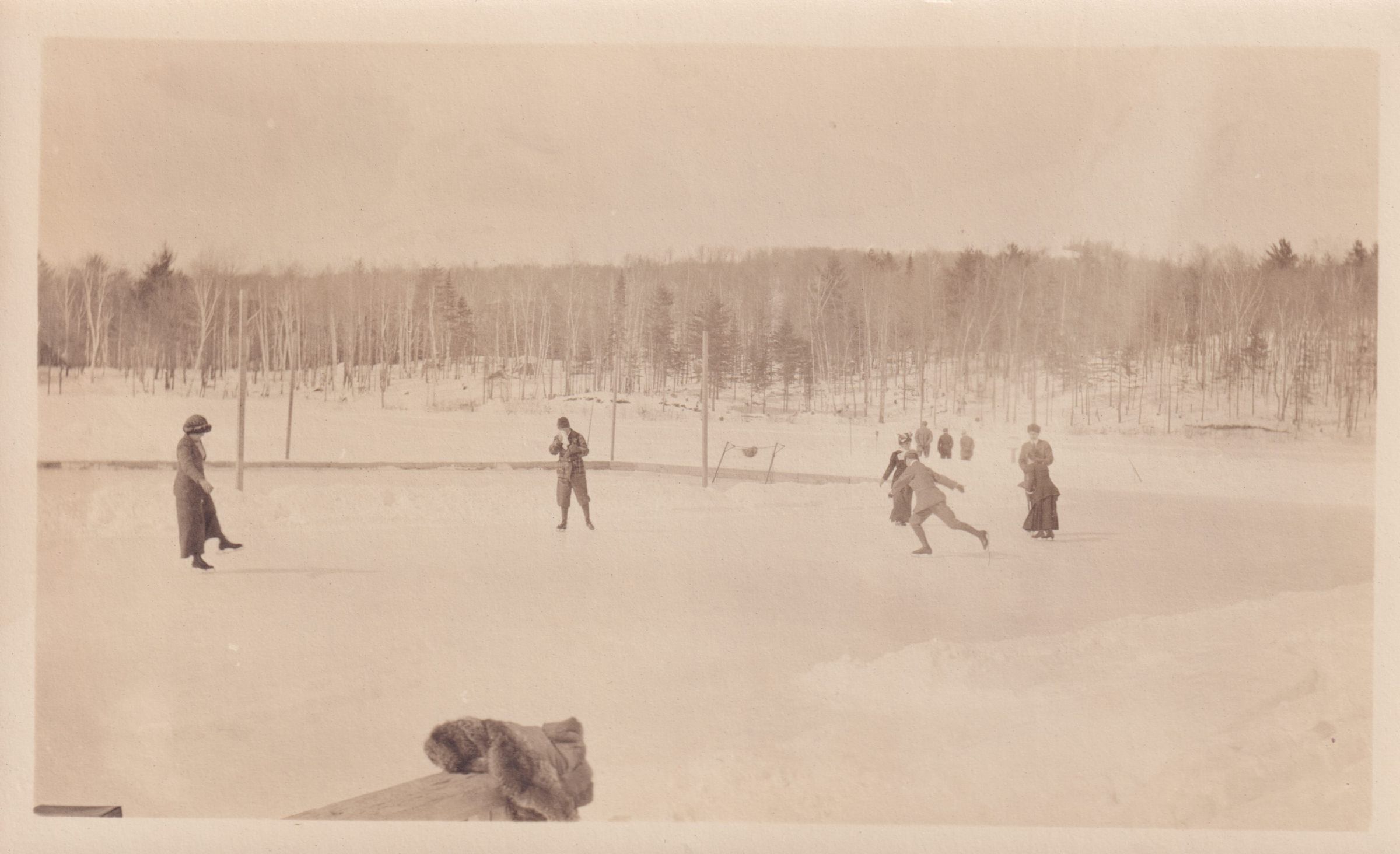 Photograph of people ice skating on Moody Pond.