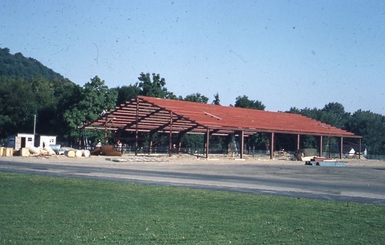 Color Kodachrome slide showing a building under construction. This item is not fully cataloged but has been uploaded so the image is publicly available; if you would like us to prioritize cataloging this item, please contact the HSL Collections team.