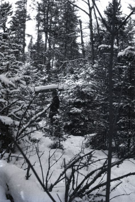 Negative of an unidentified man standing among pine trees in a snow covered forest. Most likely taken by Mary Ives Baldwin. This item is not fully cataloged but has been uploaded so the image is publicly available; if you would like us to prioritize cataloging this item, please contact the HSL Collections team.