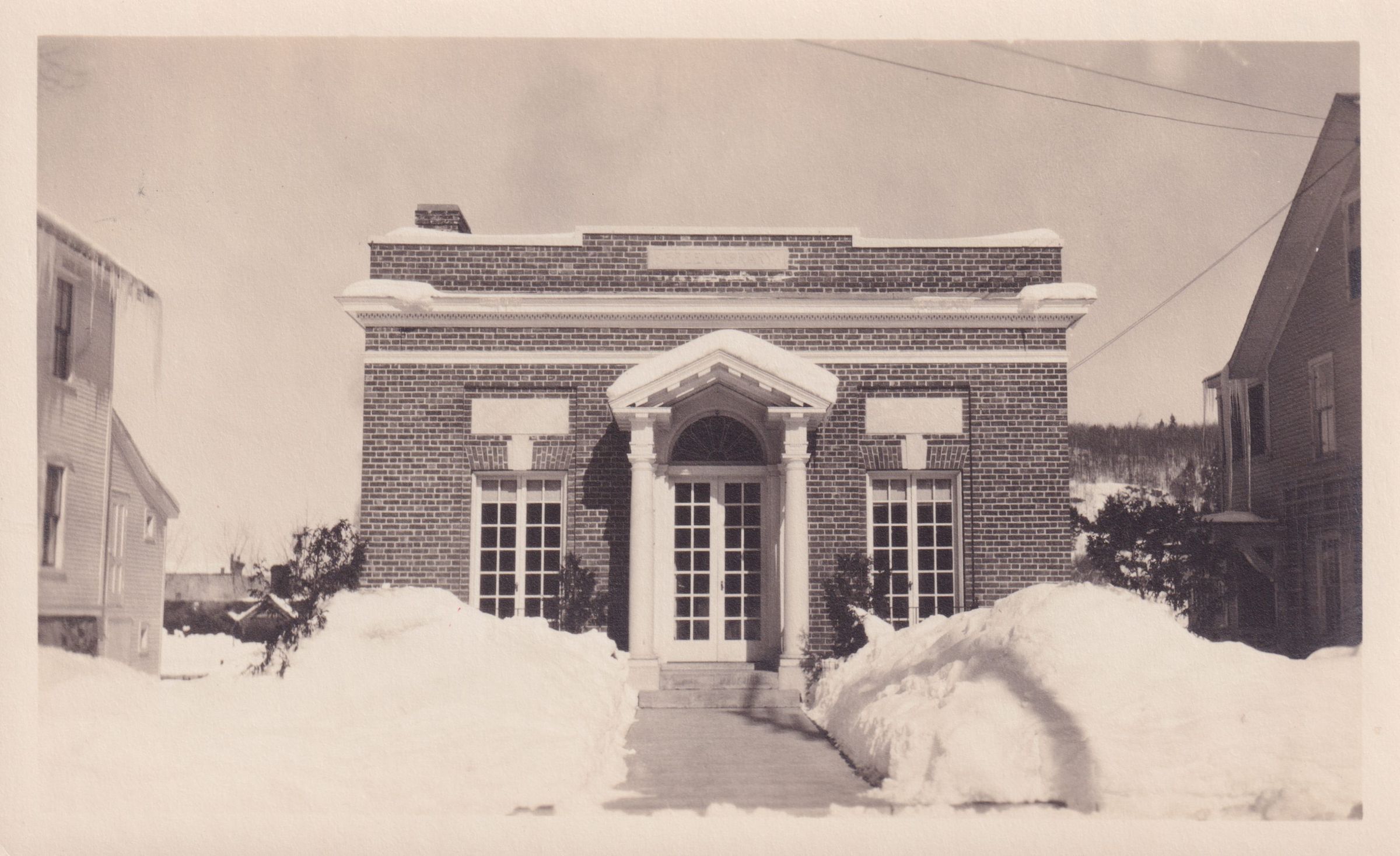 Photograph of the Saranac Lake Free Library in the snow.