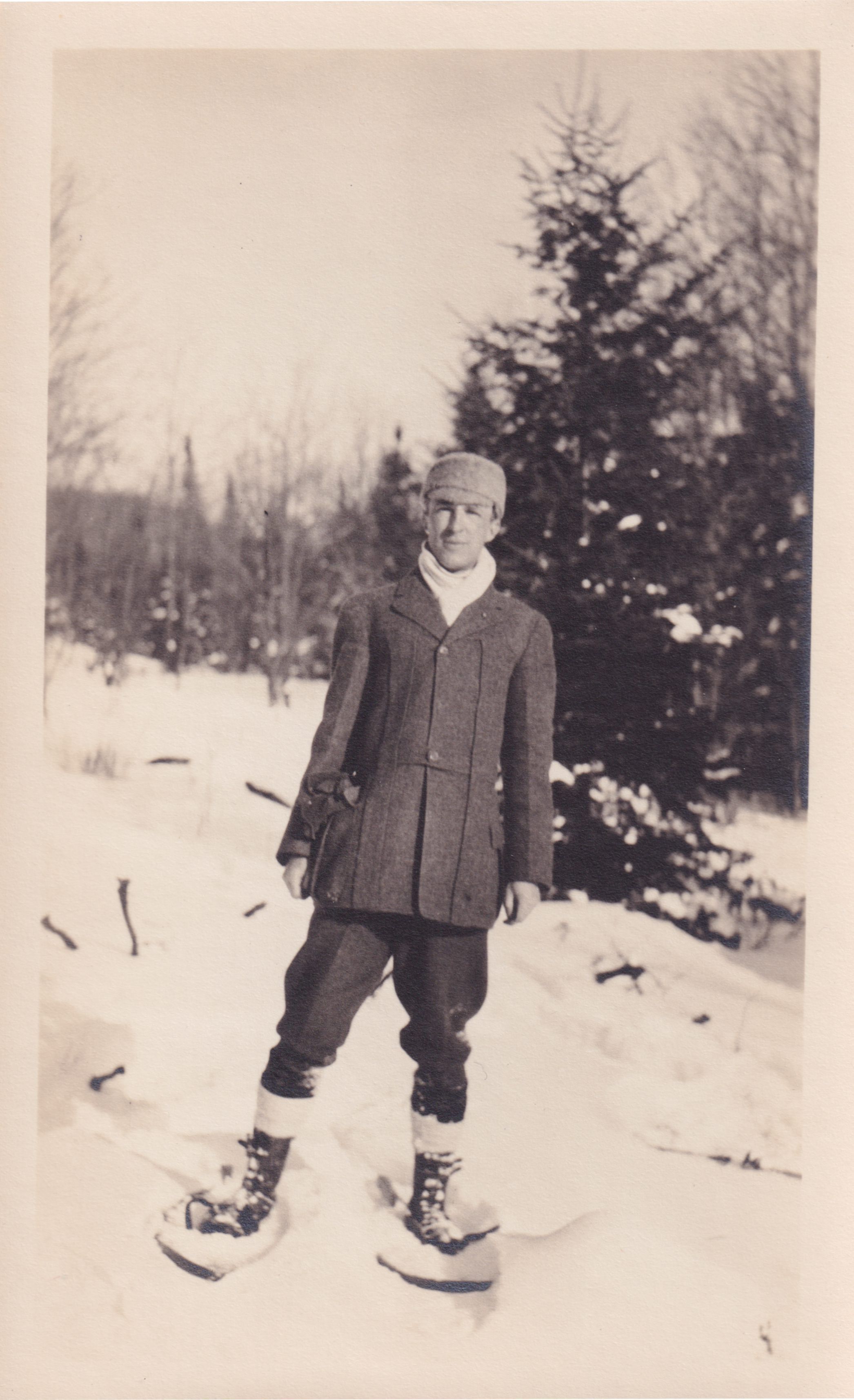 Photograph of Fletcher Durbin standing wearing snowshoes in the snow.