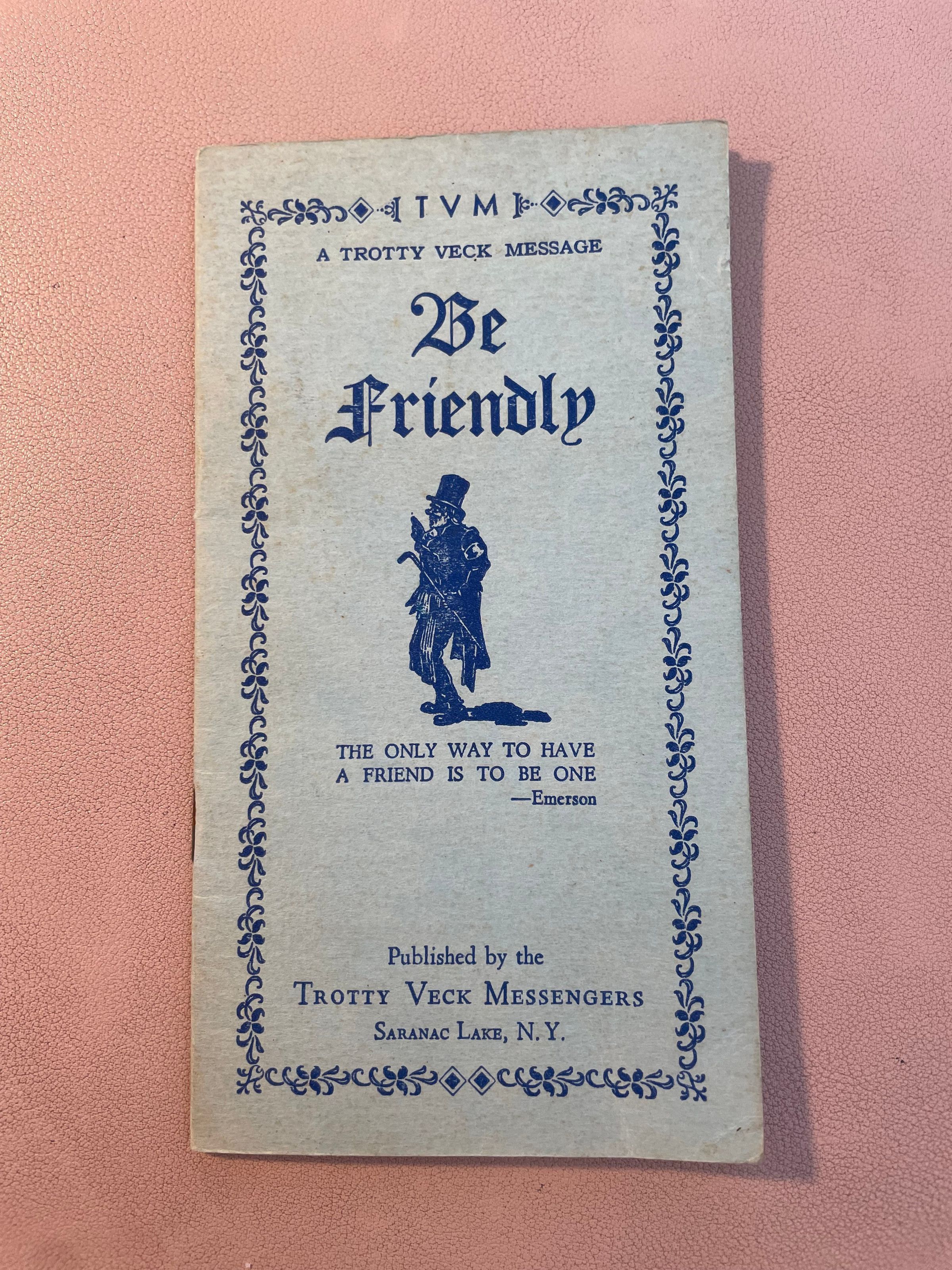 Trotty Veck Message [No. 8]: Be Friendly. First edition, c. 1917. Softcover, blue paper with dark blue ink.