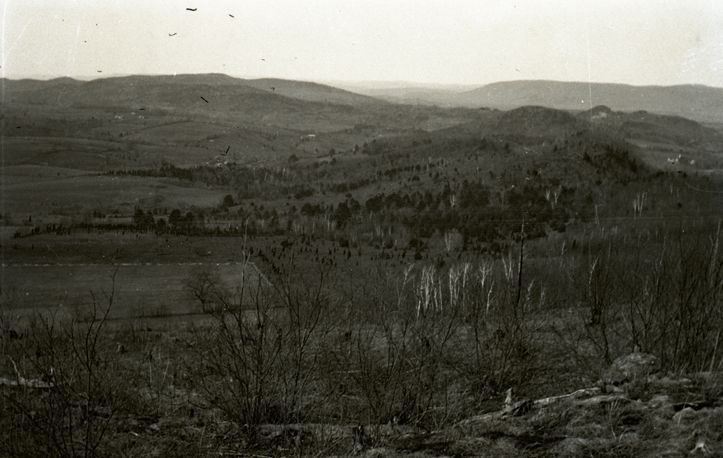 Negative of an open field, taken from a higher elevation behind some scrub brush. Most likely taken by Mary Ives Baldwin. This item is not fully cataloged but has been uploaded so the image is publicly available; if you would like us to prioritize cataloging this item, please contact the HSL Collections team.