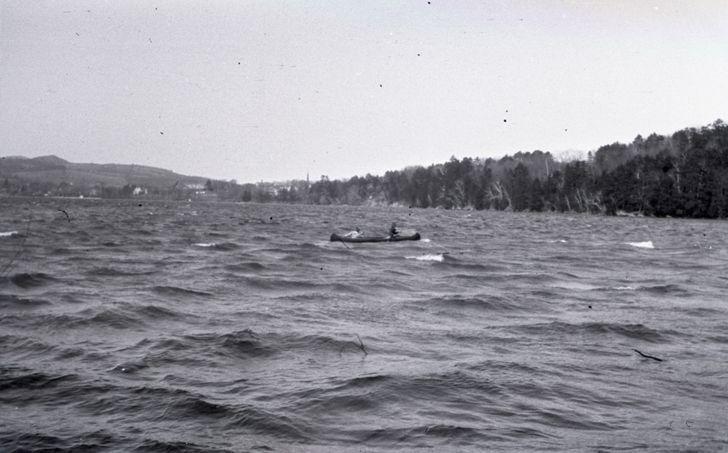 Negative of two unidentified persons in a canoe. Taken by Mary Ives Baldwin. This item is not fully cataloged but has been uploaded so the image is publicly available; if you would like us to prioritize cataloging this item, please contact the HSL Collections team.