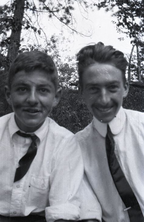 Negative of two young men with paint or mud on their faces. Henry Ives Baldwin is on the left. Baldwin's paint appears to be army camouflage-inspired, while the one on the right is wearing a fake goatee. Most likely taken by Mary Ives Baldwin. This item is not fully cataloged but has been uploaded so the image is publicly available; if you would like us to prioritize cataloging this item, please contact the HSL Collections team.